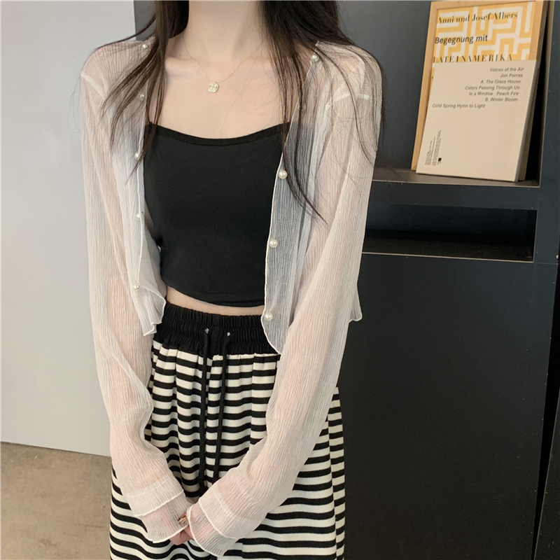 우아한 자외선 차단제 쉬폰 카디건 여성용 여름 아이스 실크 니트 작은 목도리 스커트 외부 페어리 툴레 탑