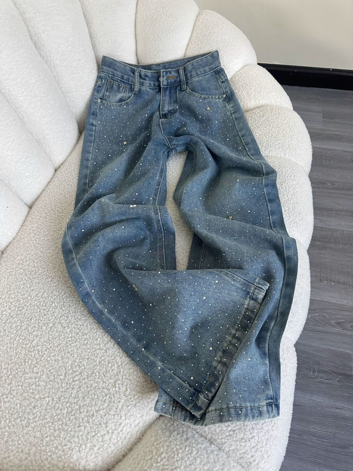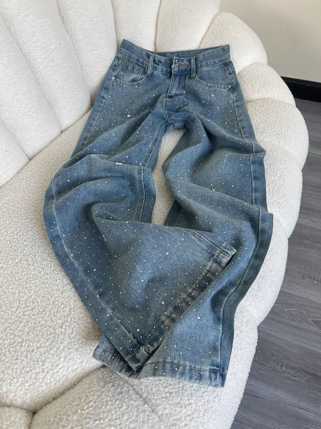 무거운 의무 뜨거운 시추 청바지 여성의 여름 새 플러스 사이즈 배 모양의 몸 작은 느슨한 슬리밍 스트레이트 레그 와이드 레그 팬츠