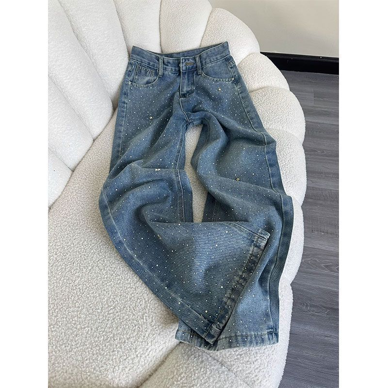 무거운 의무 뜨거운 시추 청바지 여성의 여름 새 플러스 사이즈 배 모양의 몸 작은 느슨한 슬리밍 스트레이트 레그 와이드 레그 팬츠스토어 가기