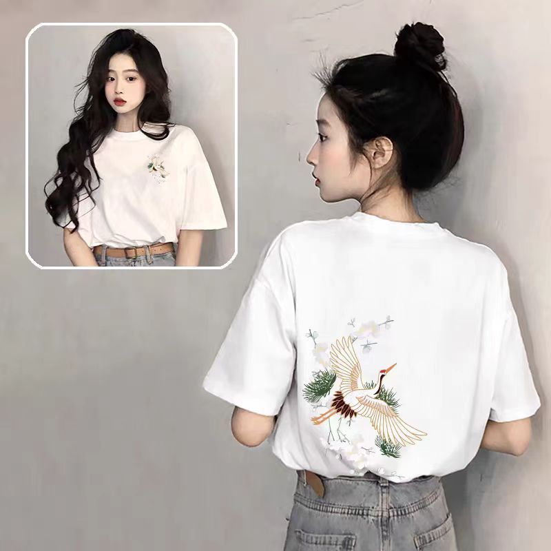여성을위한 중국 스타일 흰색 반팔 티셔츠 2025 여름 새로운 핫 스타일 디자인 대형 순수 코튼 티셔츠 루즈 탑스토어 가기