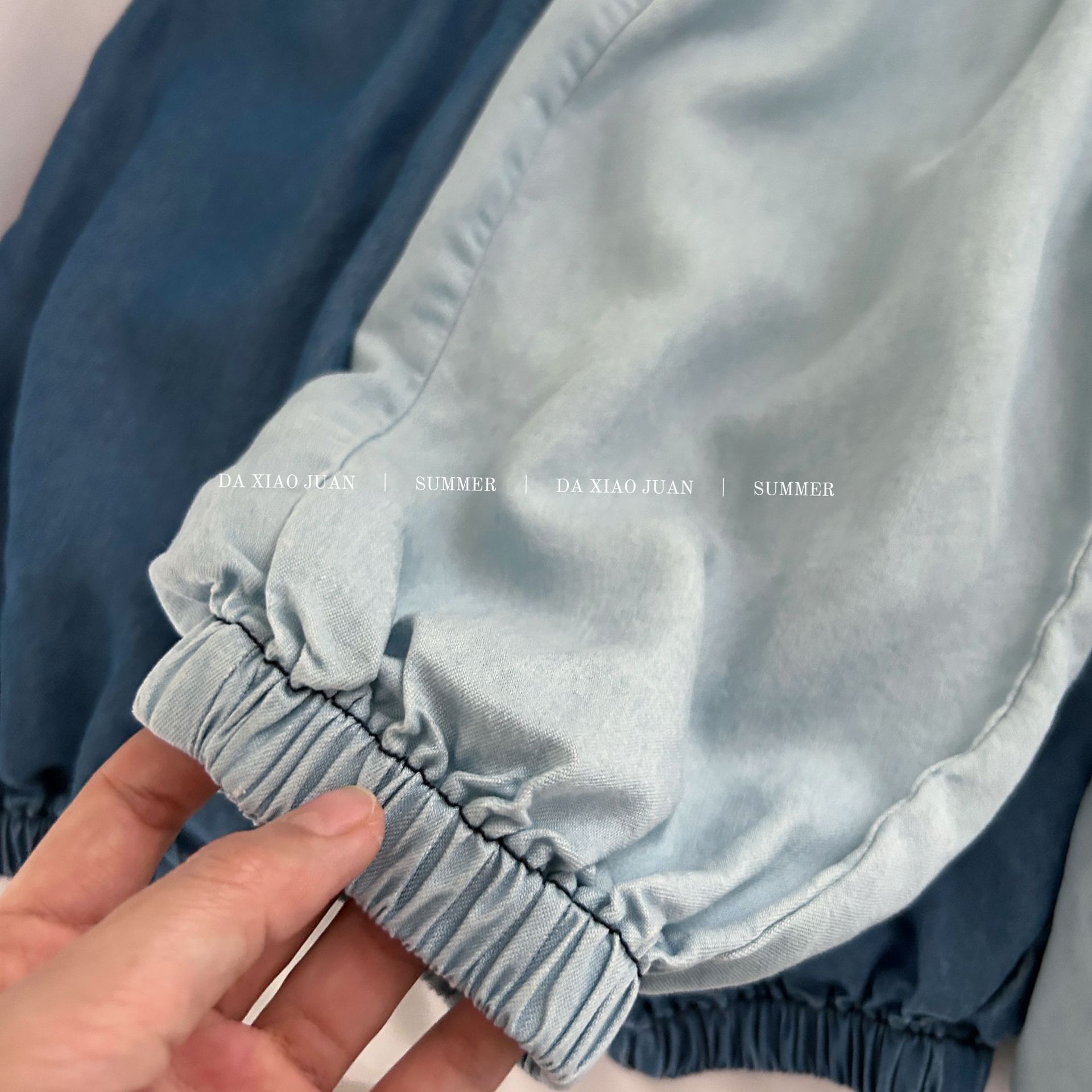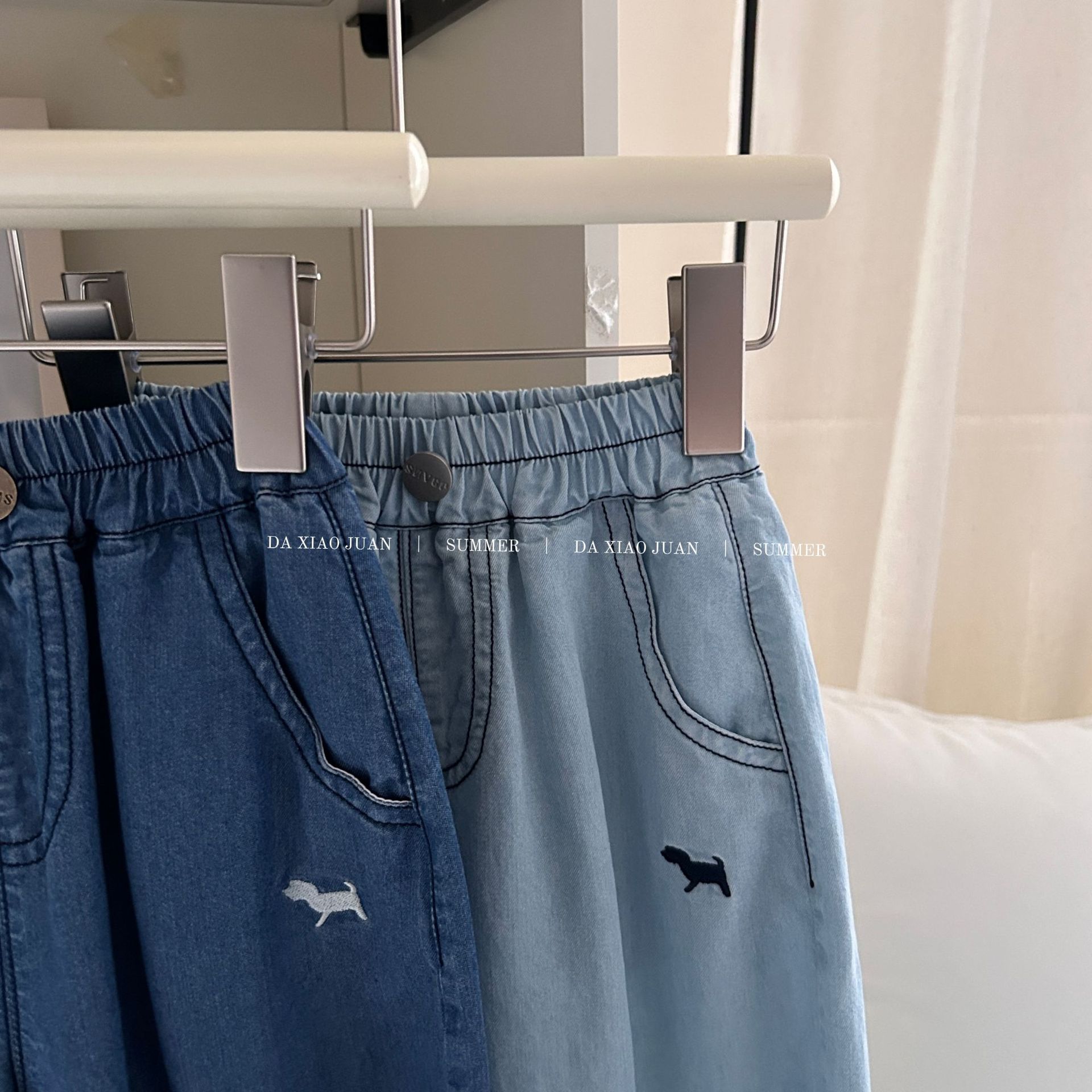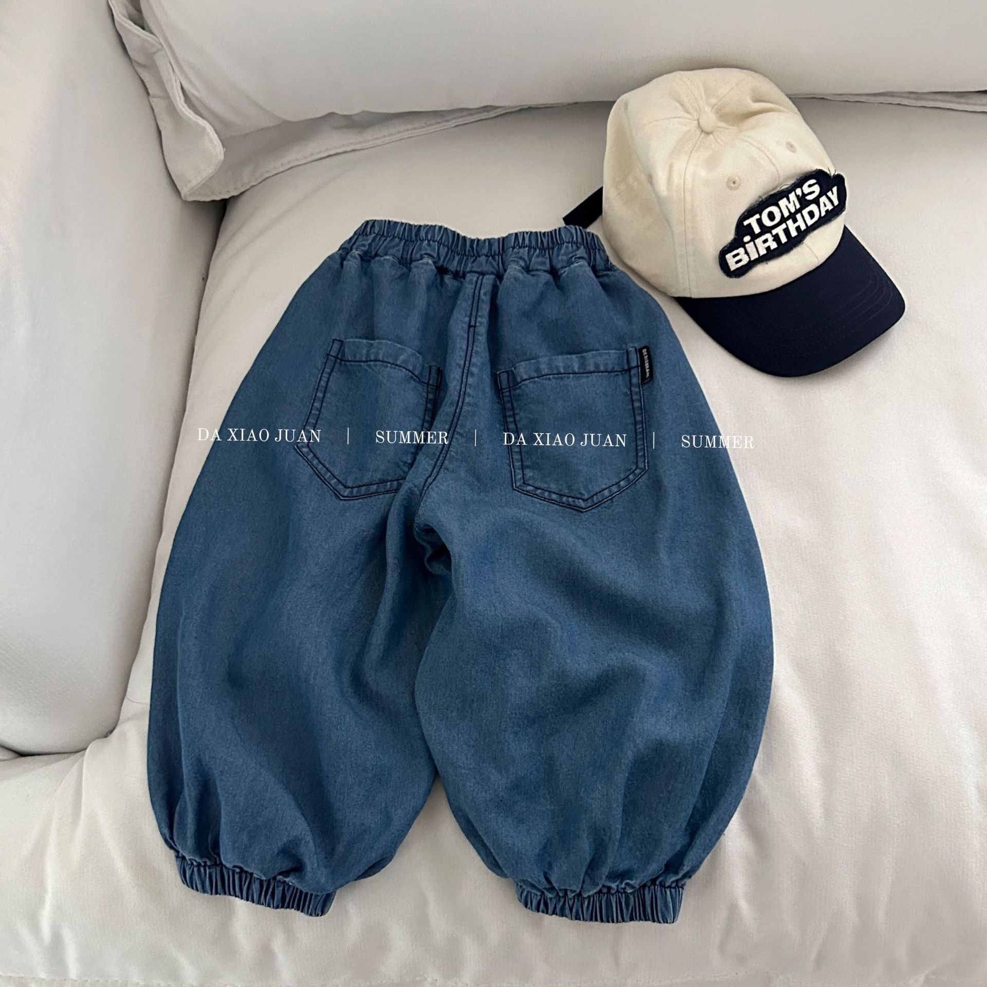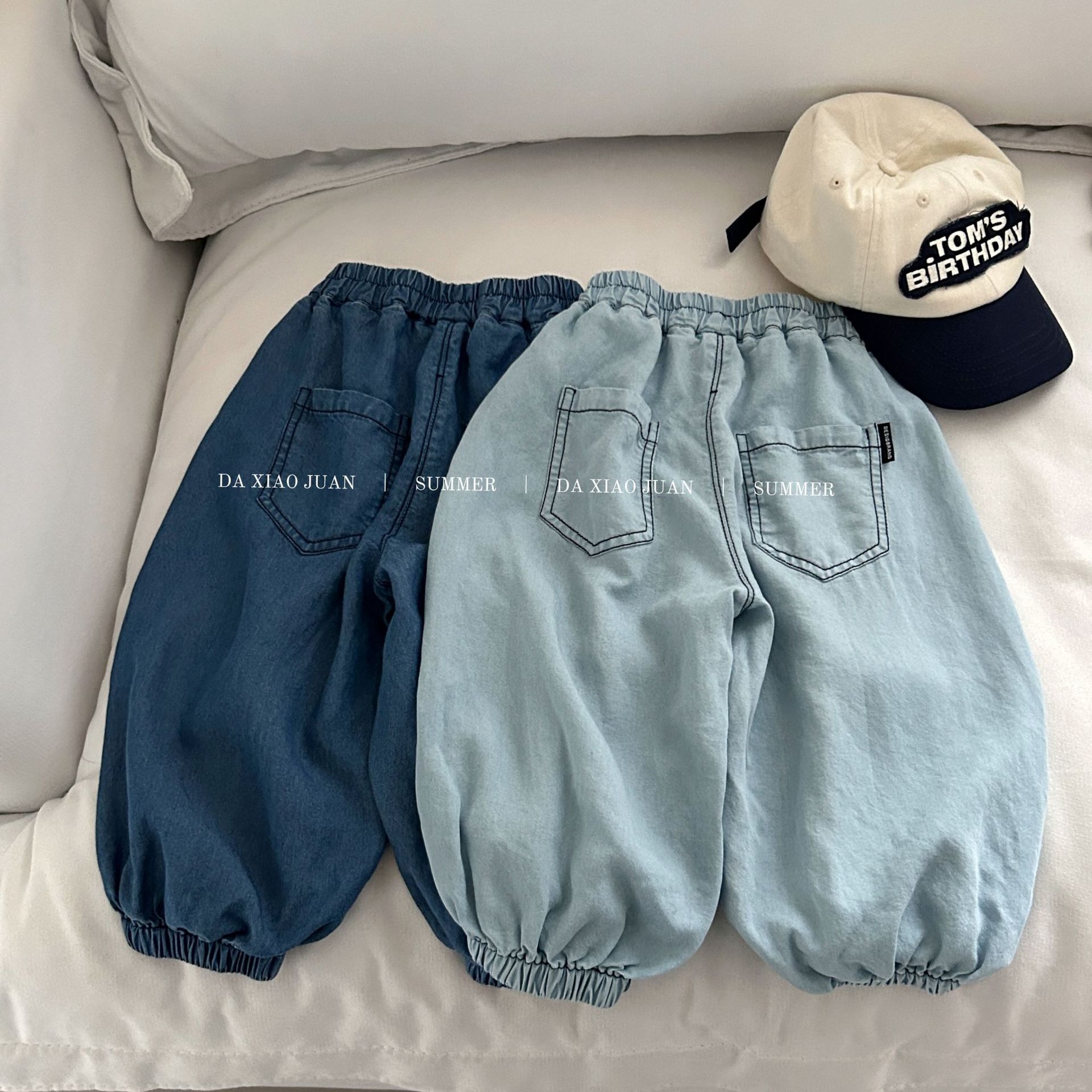 스팟 사이즈 롤 25 여름 스타일 소년 강아지 솔리드 컬러 텐셀 얇은 데님 캐주얼 바지 루즈한 아동 바지스토어 가기