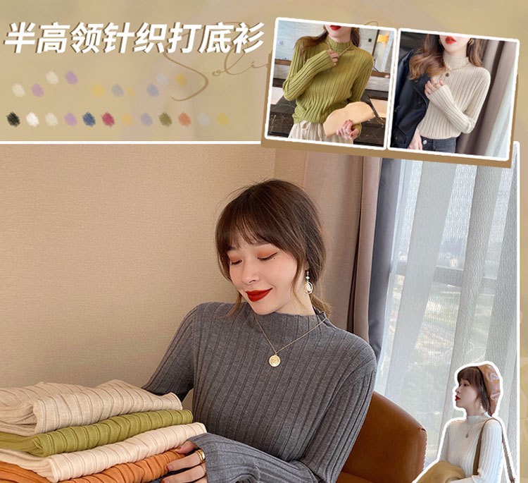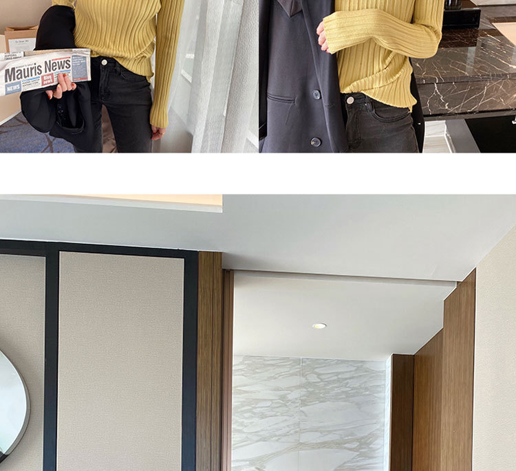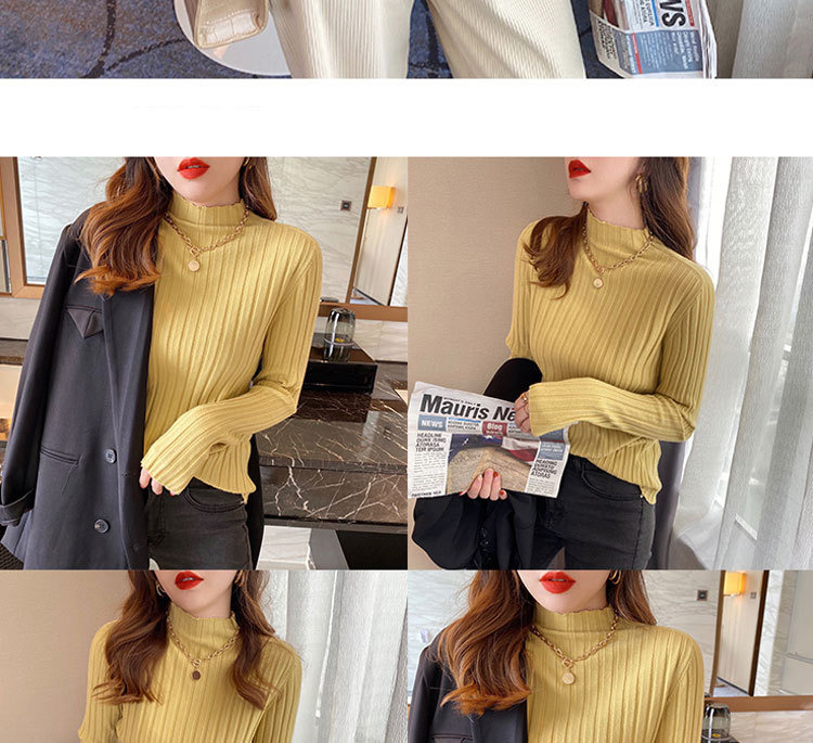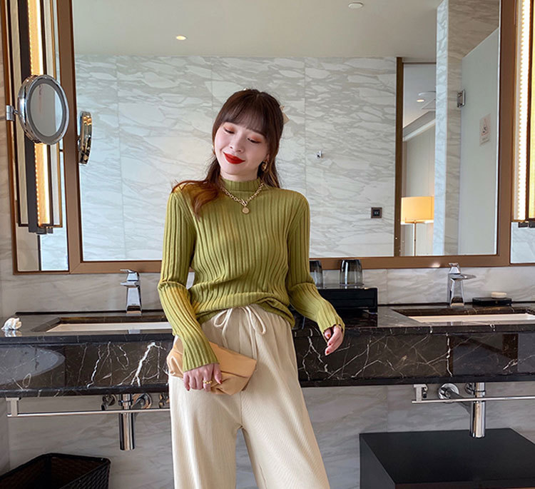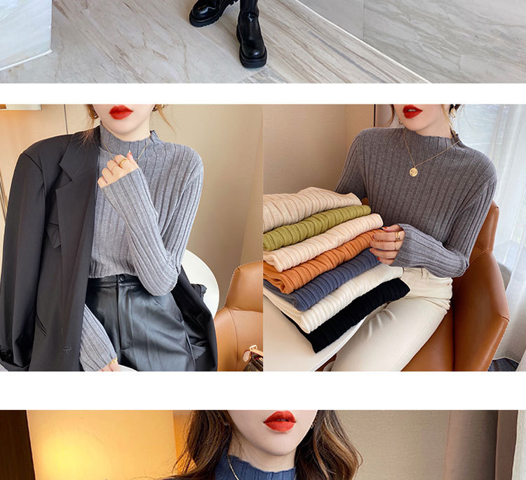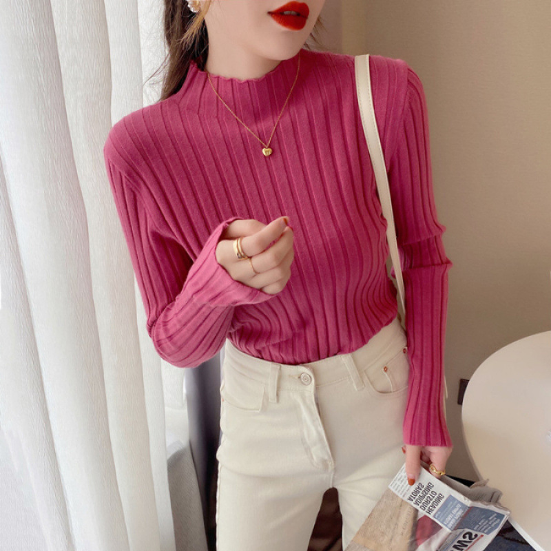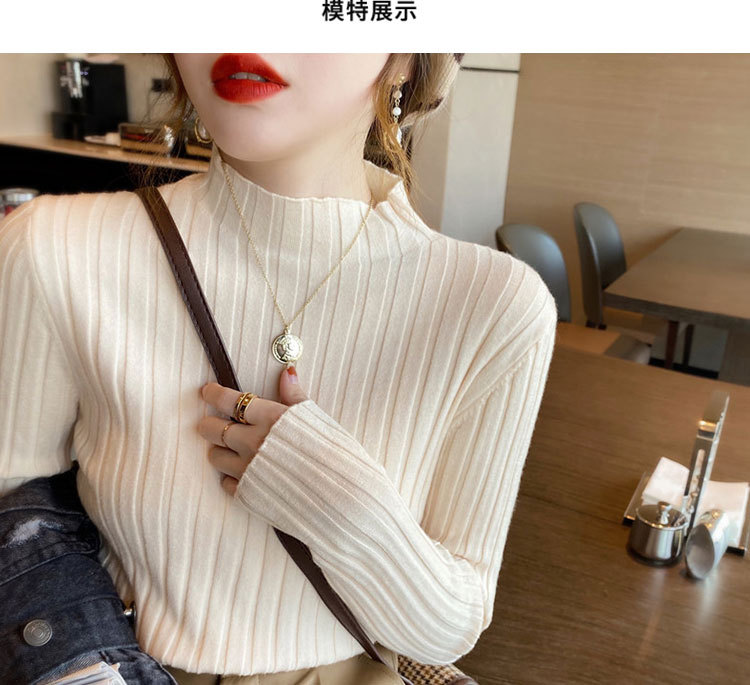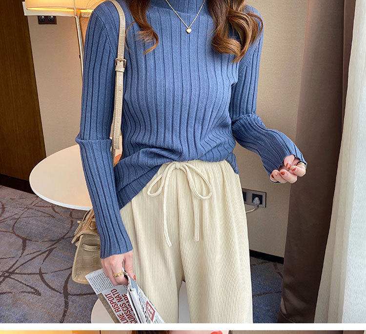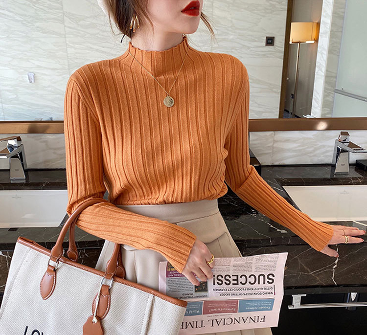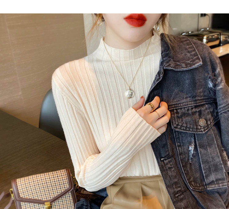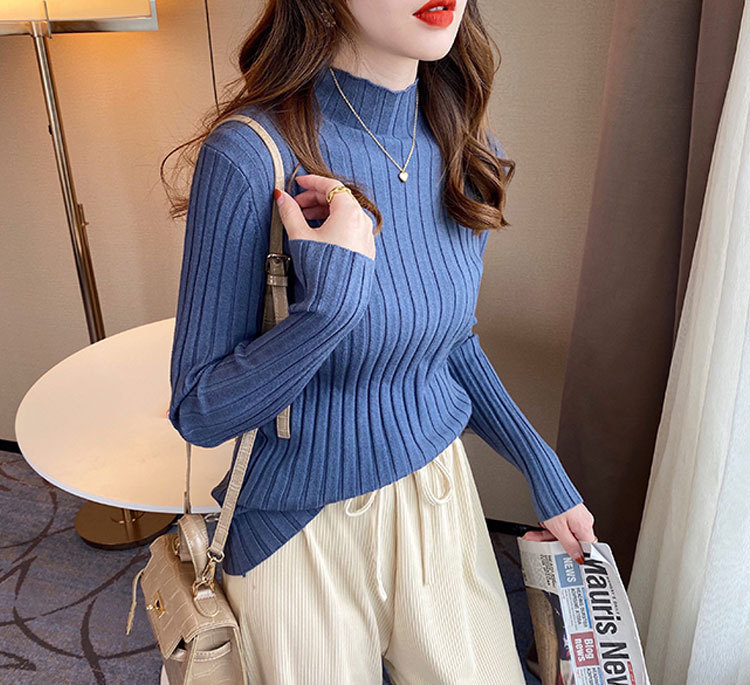 여성용 핏 스트라이프 하프 터틀넥 밑단 셔츠, 여성용 스웨터, 가을 겨울 화이트 스타일 다용도 탑, 블랙 스웨터스토어 가기