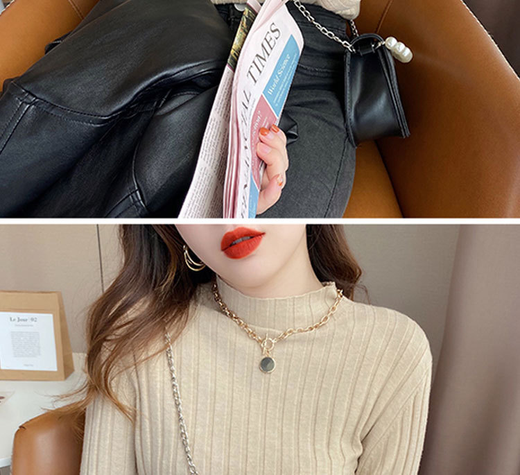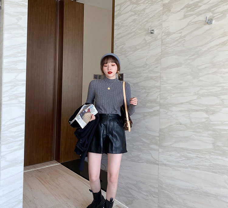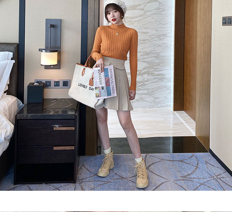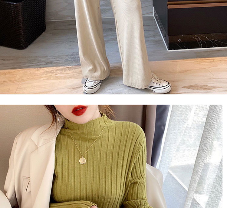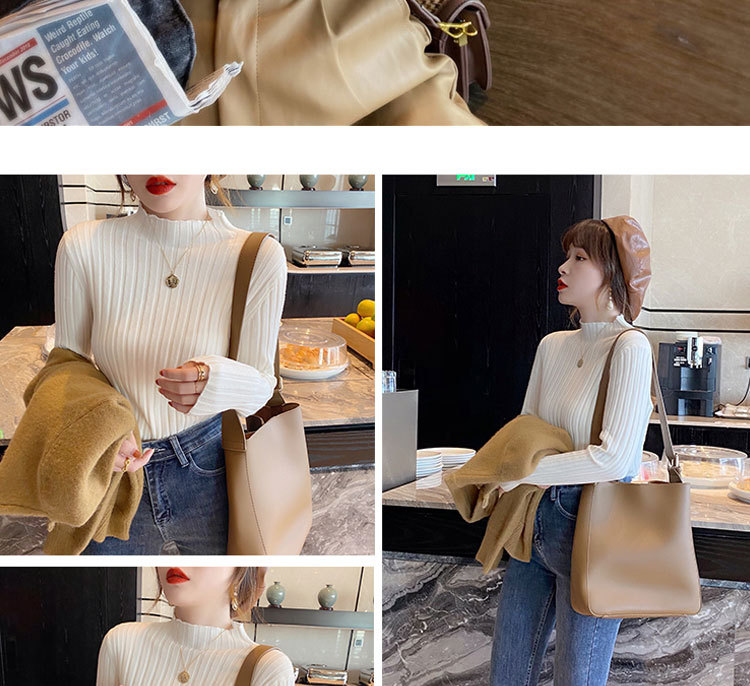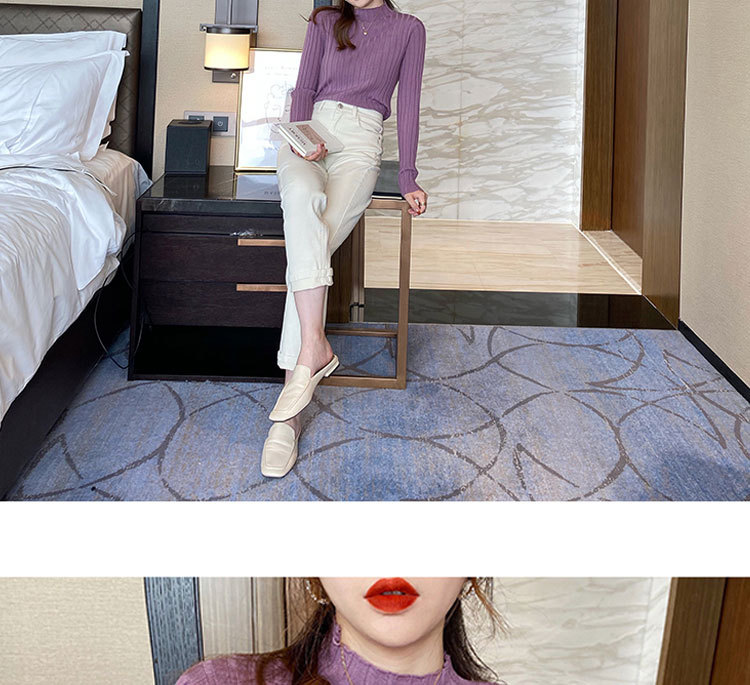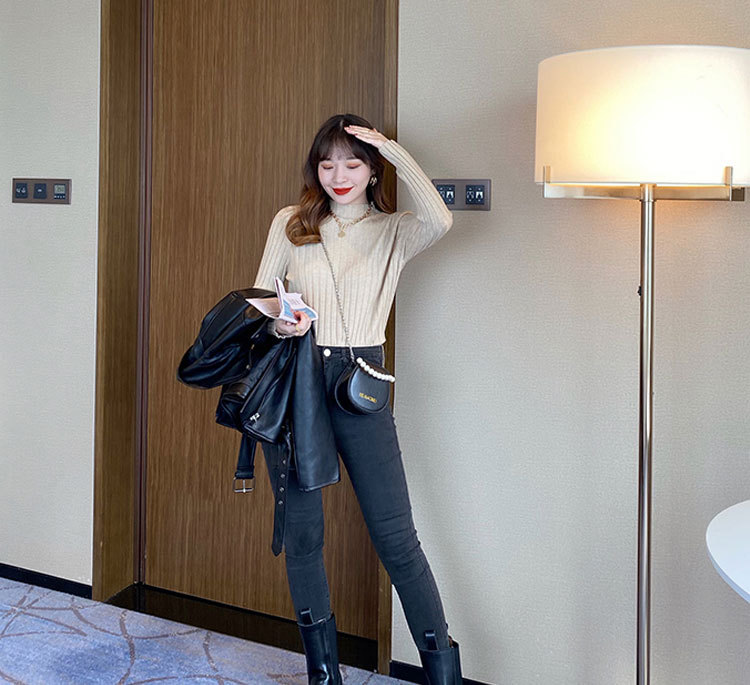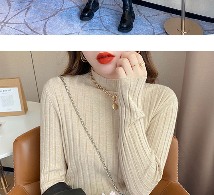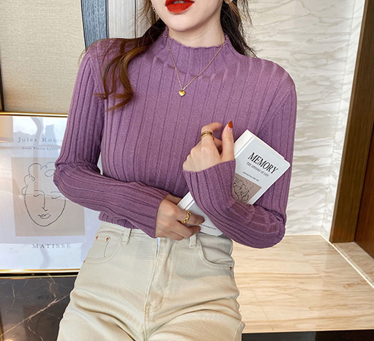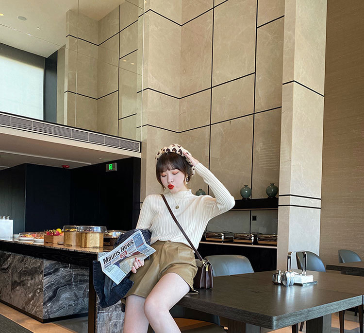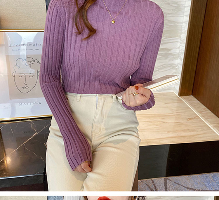 여성용 핏 스트라이프 하프 터틀넥 밑단 셔츠, 여성용 스웨터, 가을 겨울 화이트 스타일 다용도 탑, 블랙 스웨터스토어 가기