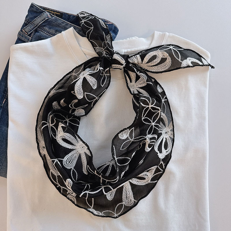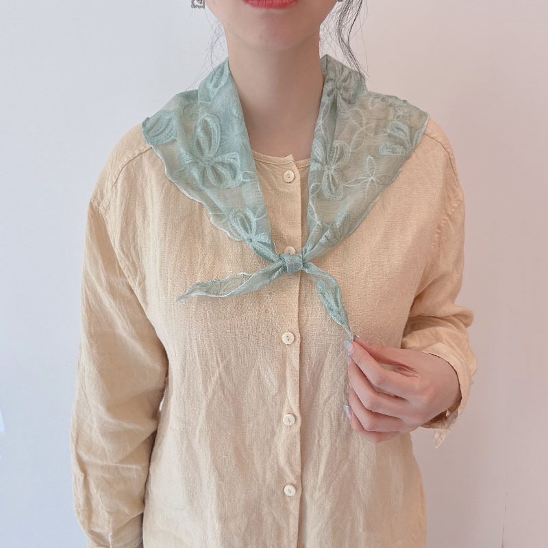 무거운 자수 삼각형 스카프 여성의 통기성 달콤한 우아한 사무실 목 보호 작은 스카프 실크 스카프 작은 신선한 스타일과 한국 스타일스토어 가기