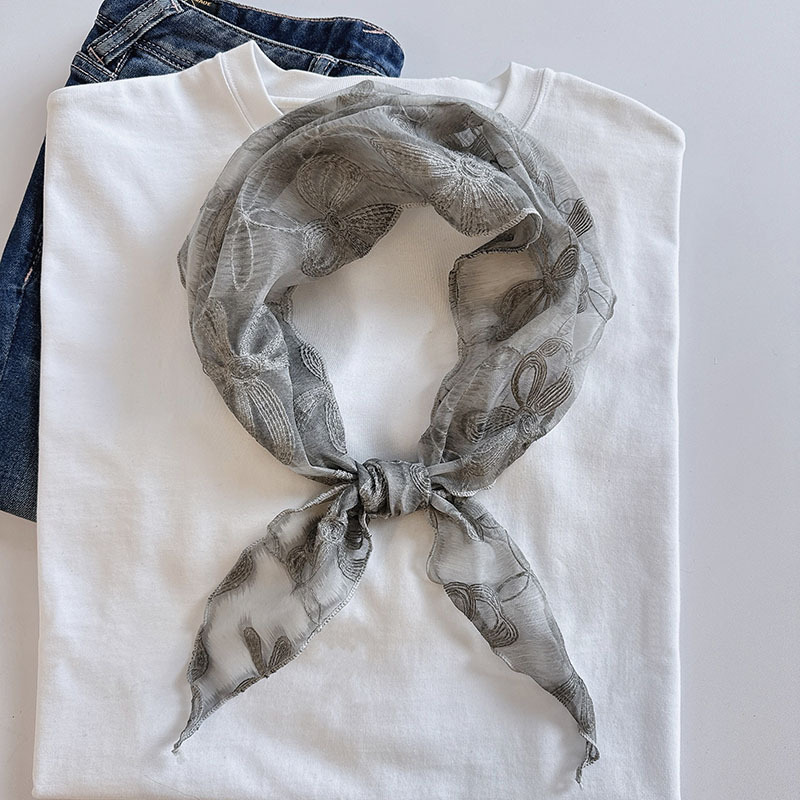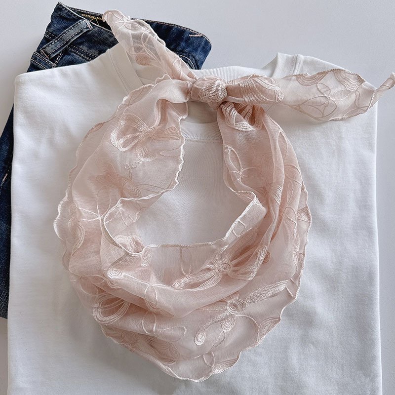 무거운 자수 삼각형 스카프 여성의 통기성 달콤한 우아한 사무실 목 보호 작은 스카프 실크 스카프 작은 신선한 스타일과 한국 스타일