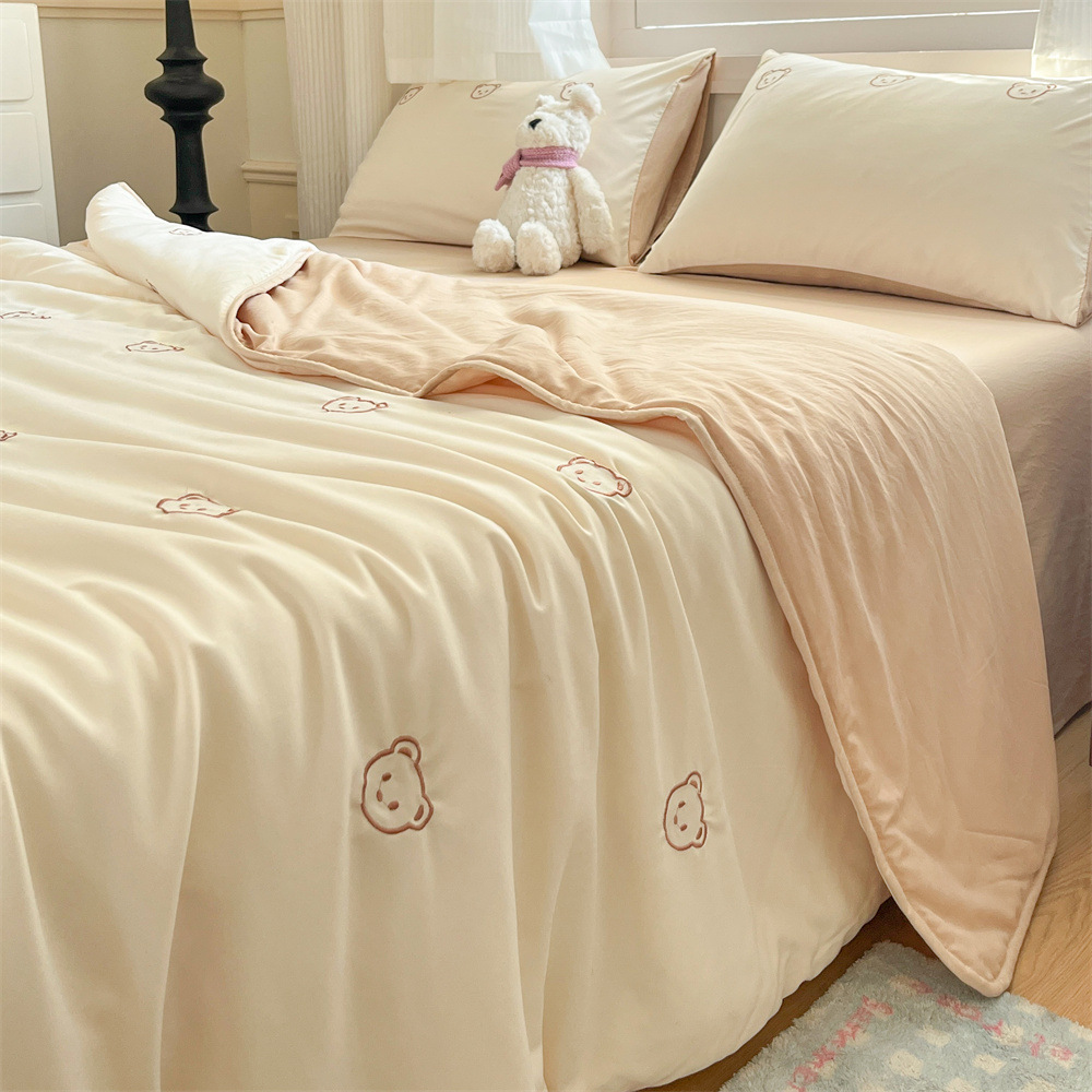 여름 신상품 A급 워시 코튼 자수 여름 이불 여름 시원한 이불 기숙사 싱글 및 더블 기계 세탁 가능한 얇은 이불 에어컨 이불