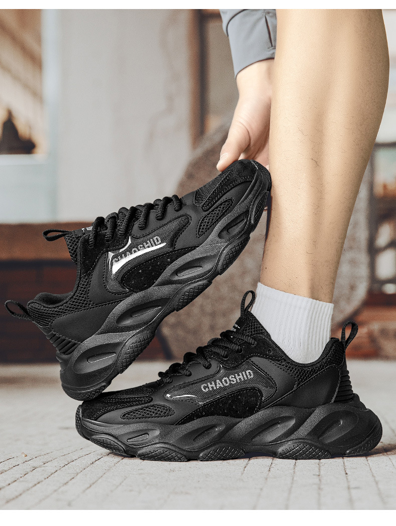 남성 신발 2025 여름 새로운 야외 캐주얼 블랙 워리어 아빠 신발 남성 부드러운 밑창 경량 통기성 스포츠 유행 신발스토어 가기