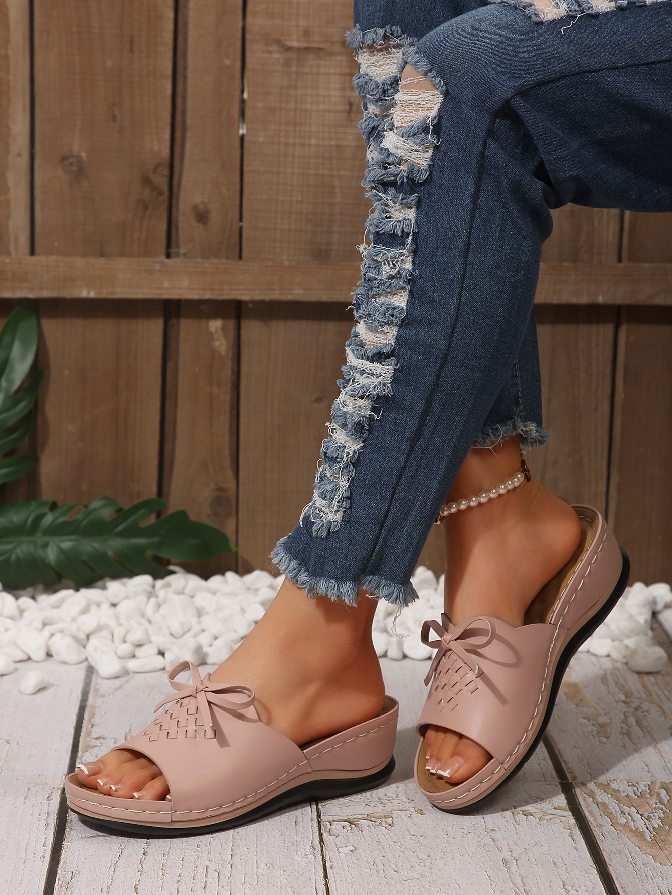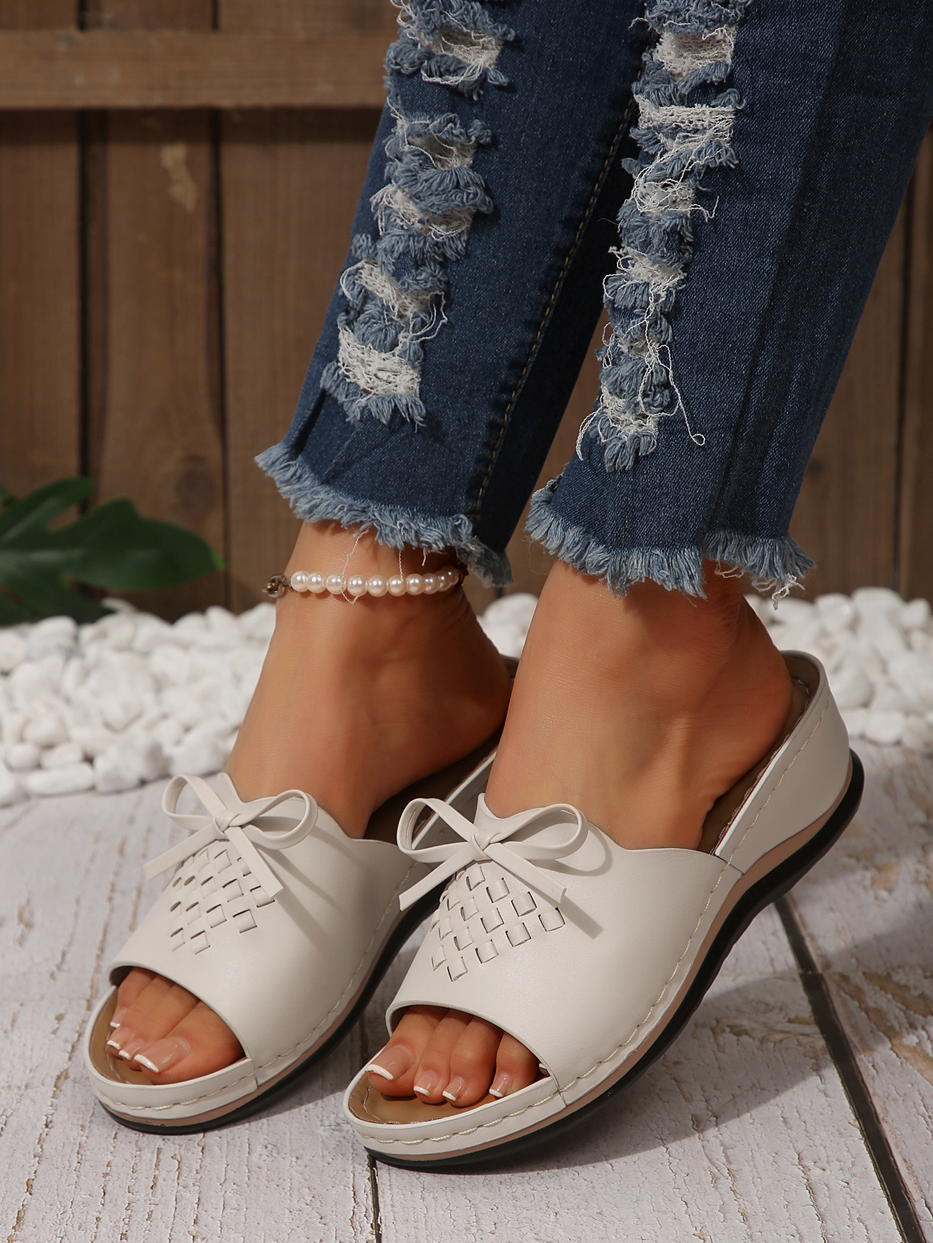 국경 간 플러스 사이즈 단색 2025 새로운 빈티지 바느질 견인 웨지 샌들 대외 무역 라운드 헤드 중공 재고 도매스토어 가기