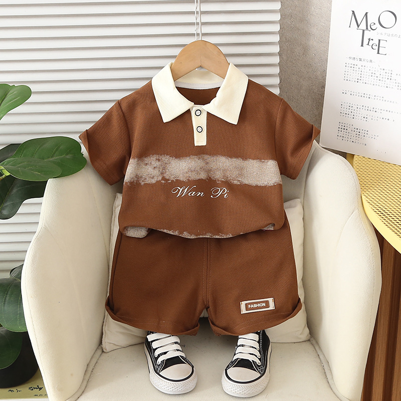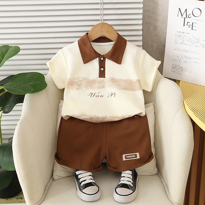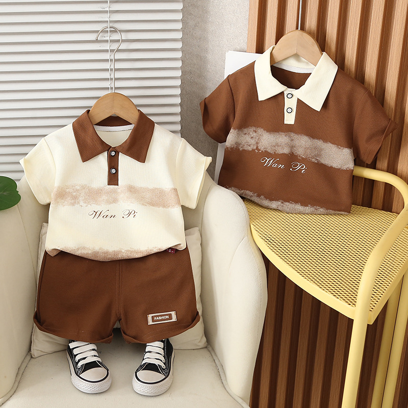 소년 여름 정장 반팔 여름 아기 소년과 어린이 스타일 폴로 반바지 투피스 세트 아동 의류 도매스토어 가기