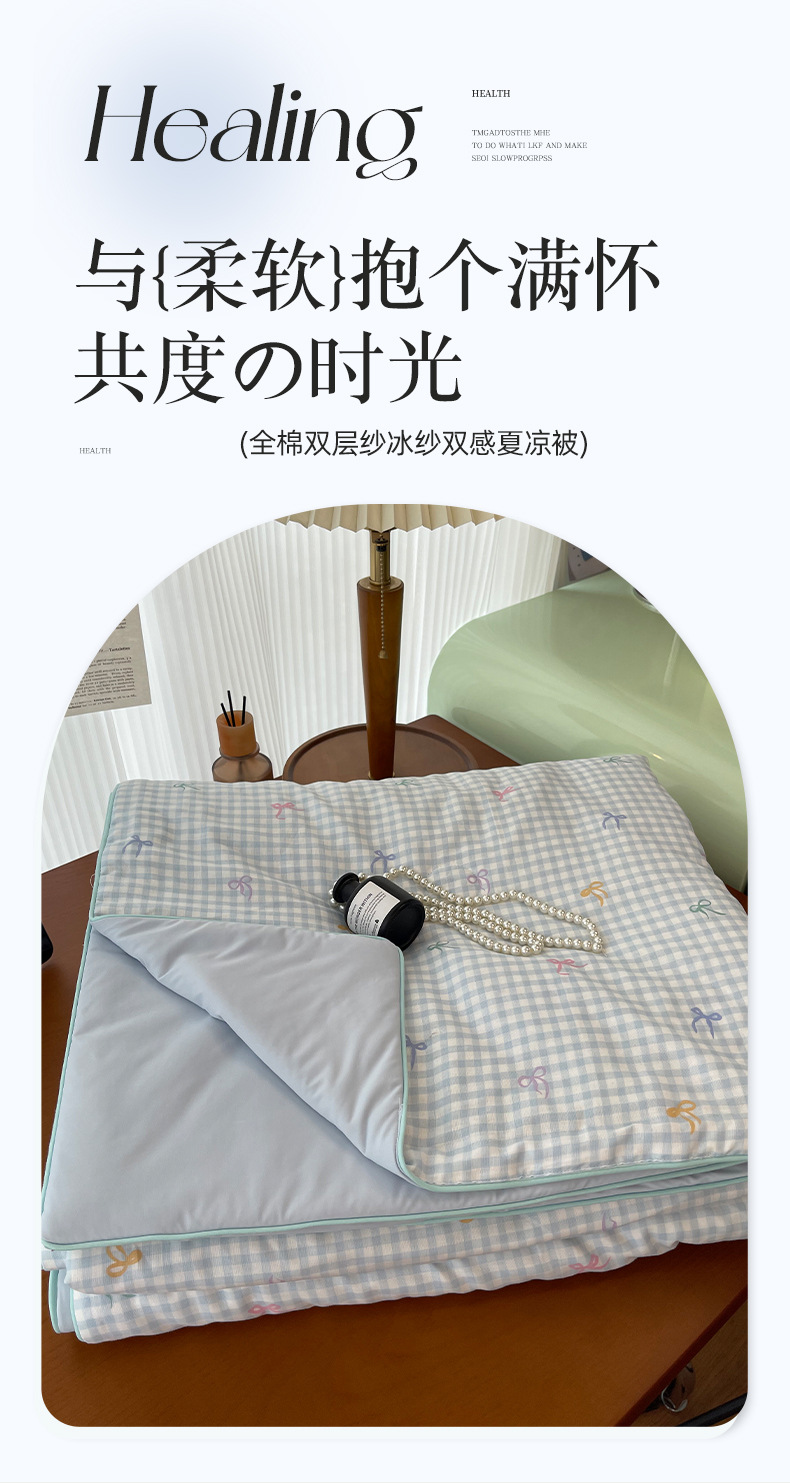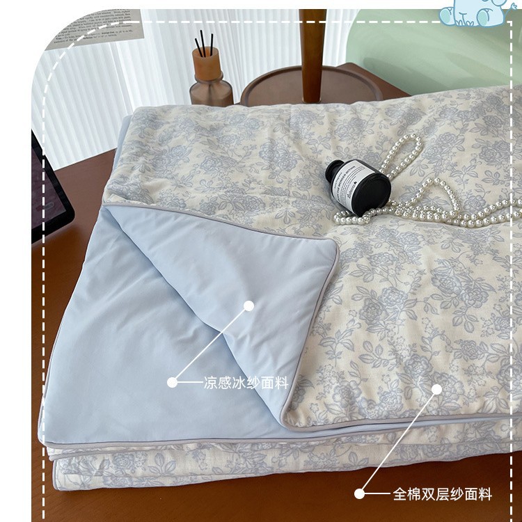 클래스 A 면 더블 레이어 원사 여름 냉각 이불 100 순면 기계 세탁 가능 에어컨 이불 냉각 얼음 실크 2025 새로운 싱글 및 더블스토어 가기
