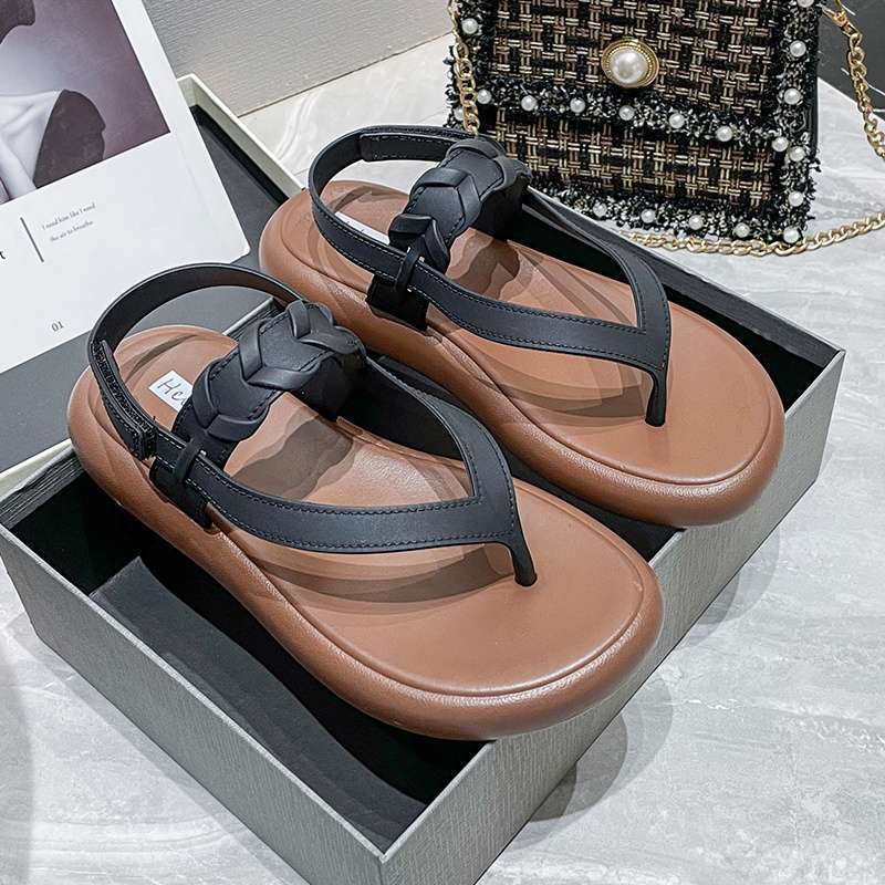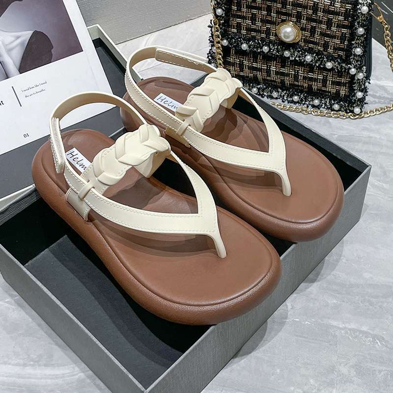 여름 아우터용 여성 샌들, 새로운 스타일의 플랫 힐, 부드러운 밑창, 작은 향기, 여름 외출용 단색 로마 신발, 비치 슬리퍼스토어 가기