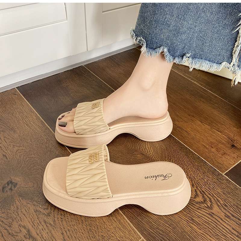 Xiaoxiangfeng Barbie Pink 2025 새로운 두꺼운 밑창 고급 슬리퍼 여성 봄 여름 외부 슬리퍼 슈퍼 핫 비치 샌들스토어 가기