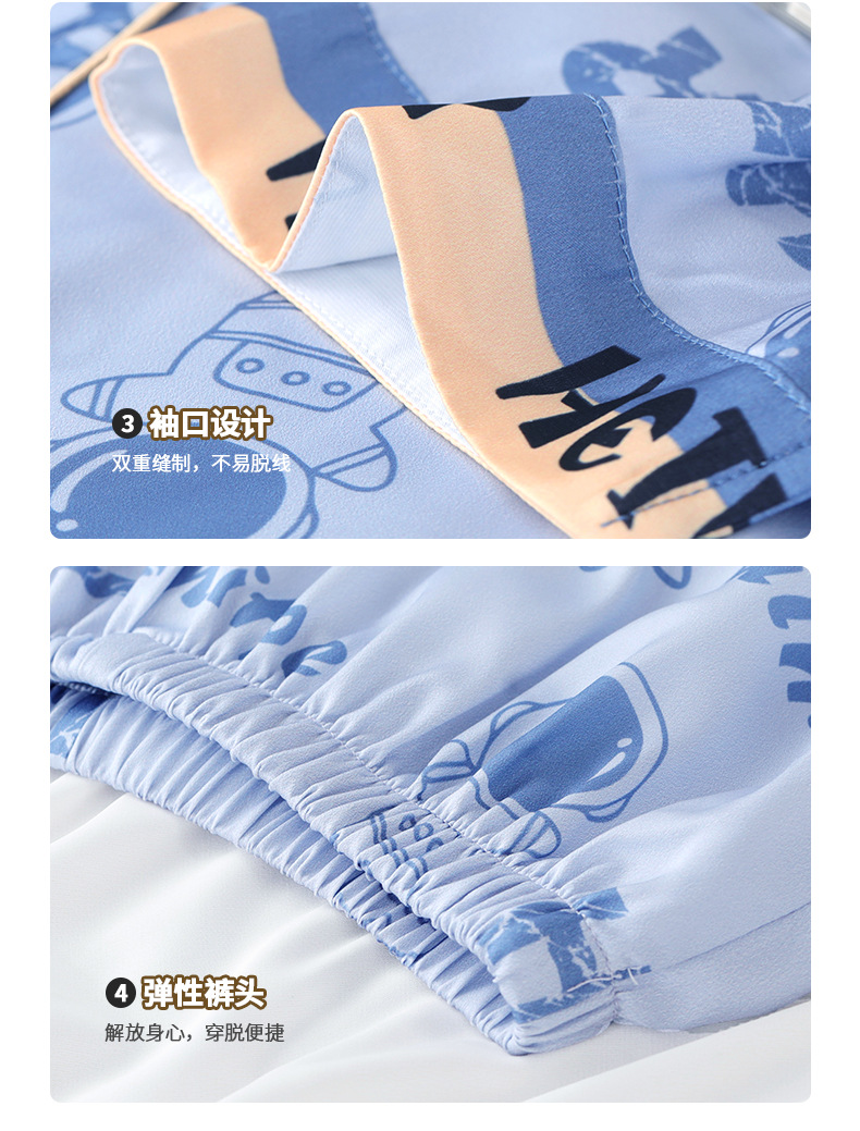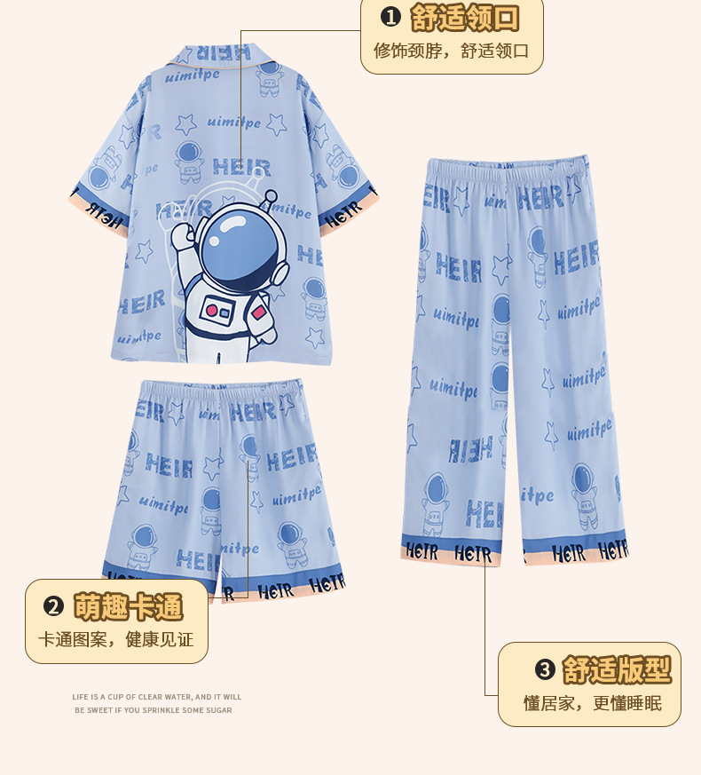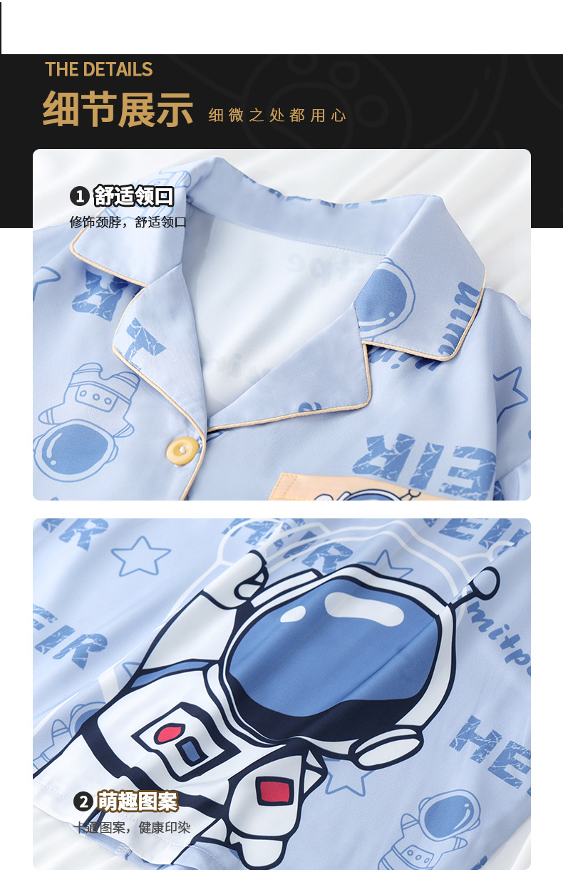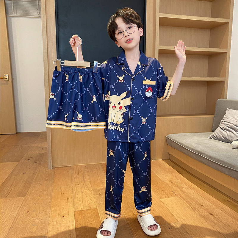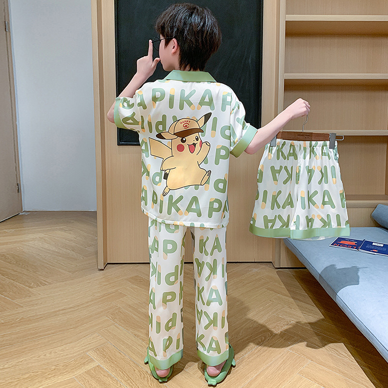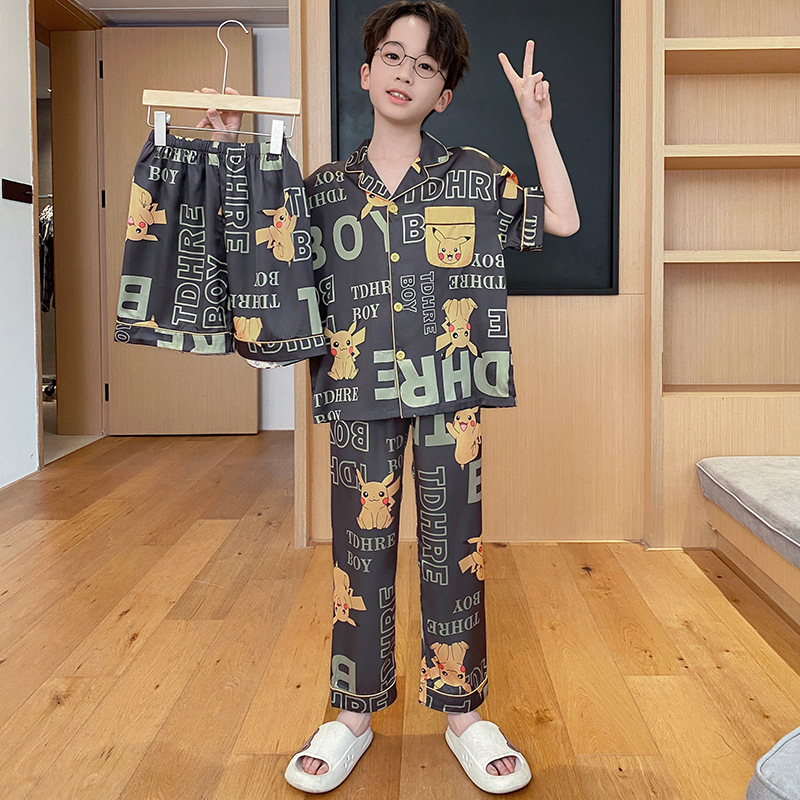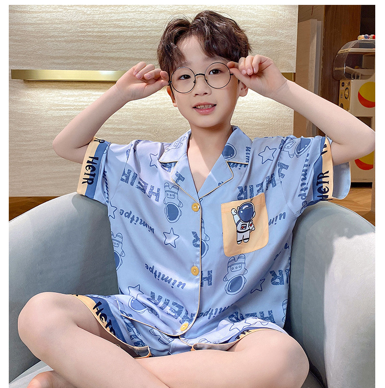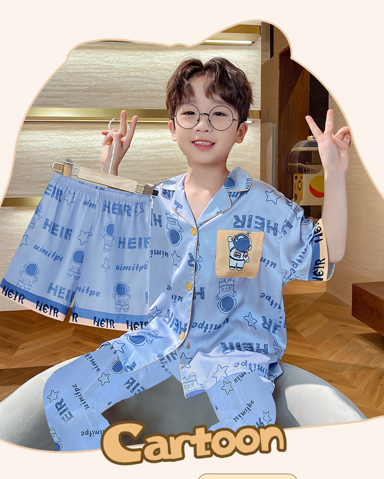 2025 여름 신작 아동 잠옷 소년 3 피스 세트 얼음과 얼음 실크 시원한 반팔 아동 소년 겉옷 가정 의류스토어 가기