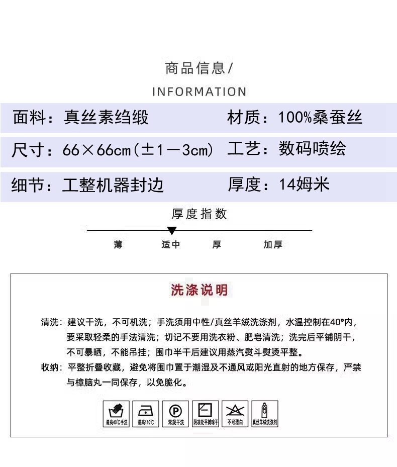 • 52 실크 크레이프 새틴 66 스퀘어 스카프 14mm