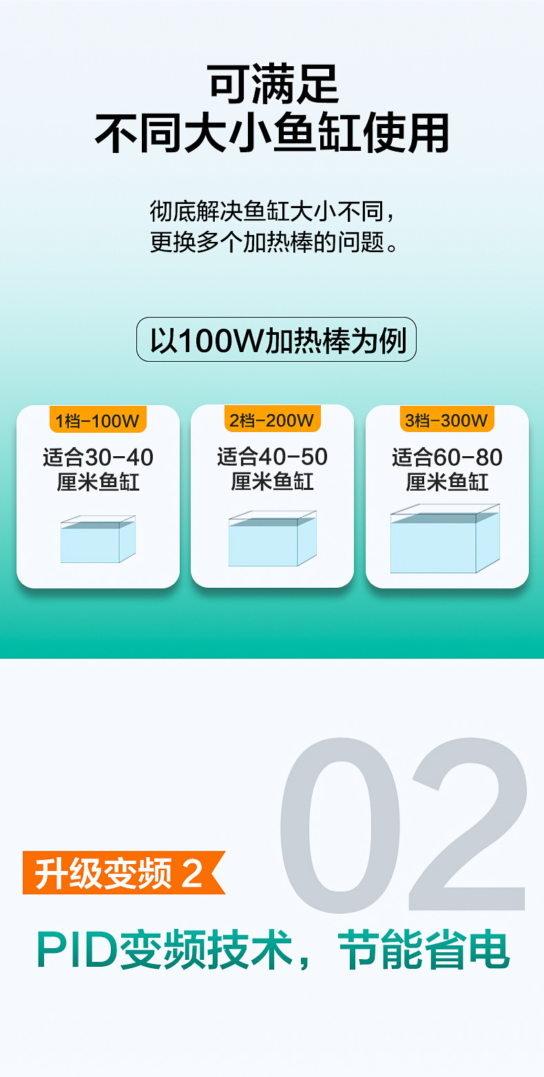 물고기 호흡 수조 가열 막대 자동 항온 가변 주파수 절전 거북이 탱크 히터 저수위 석영 가열 막대