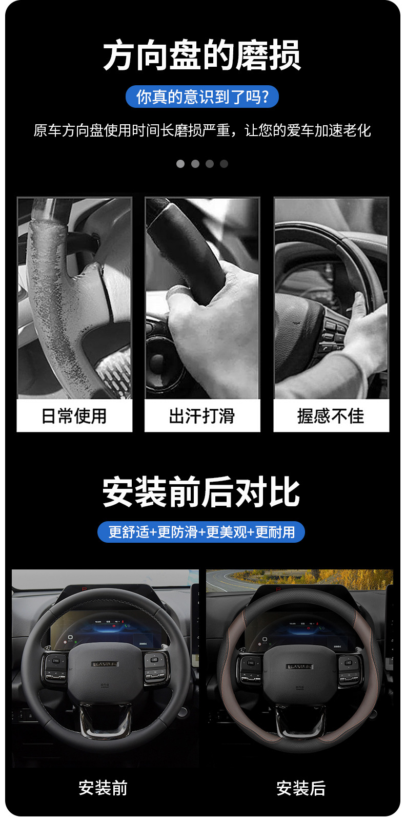 Haver 스티어링 휠 커버 2 세대 큰 개 H2 하버드 3 세대 H6/M6 랩터스 H5/H9 인테리어 초박형 가죽 핸들 커버스토어 가기