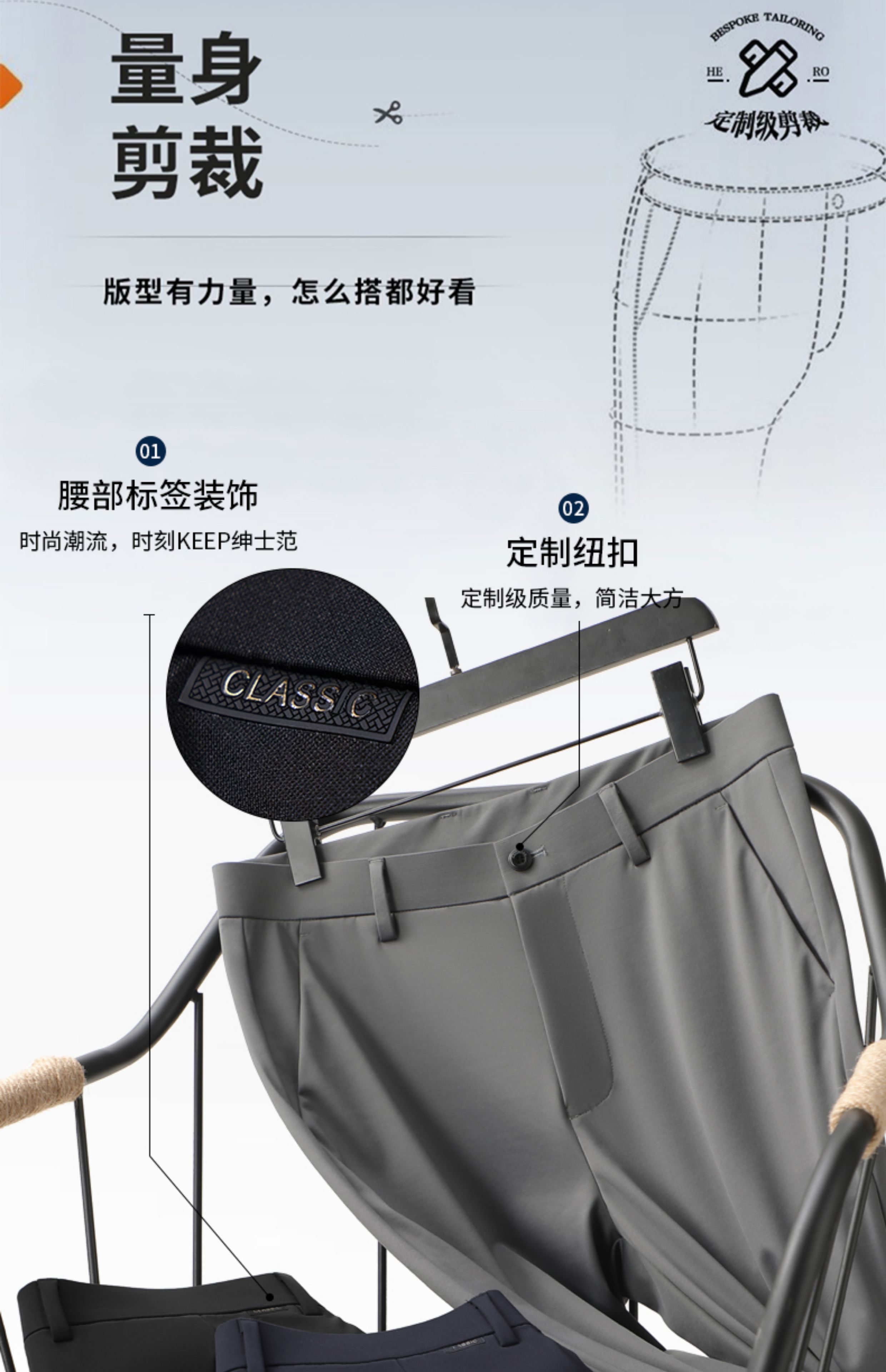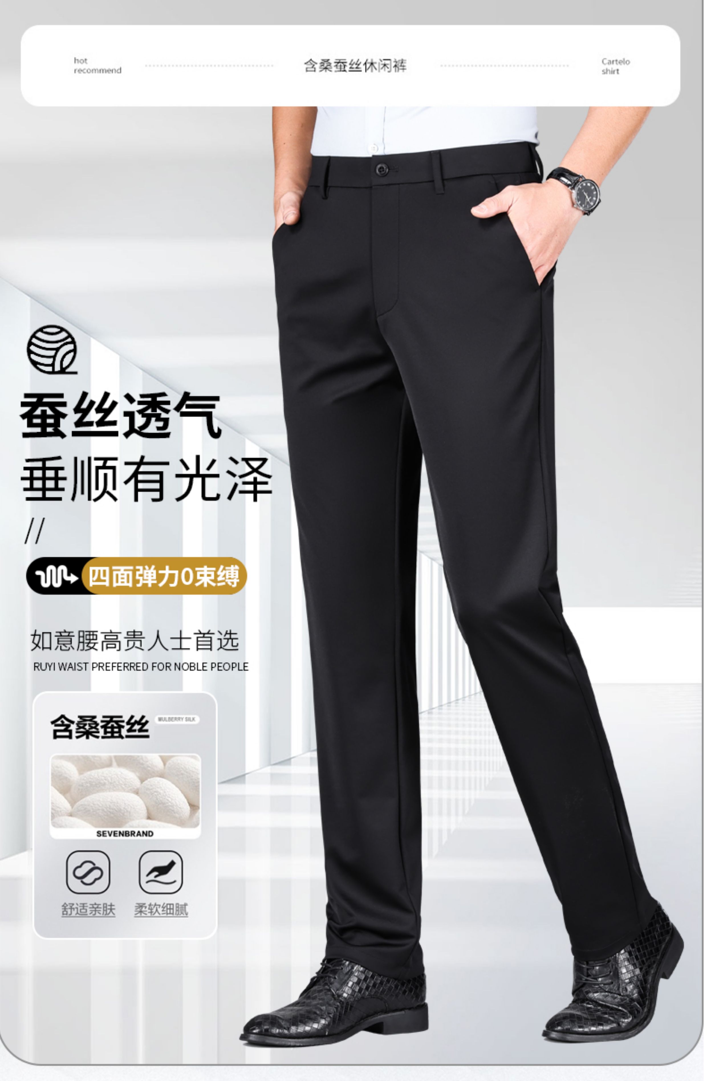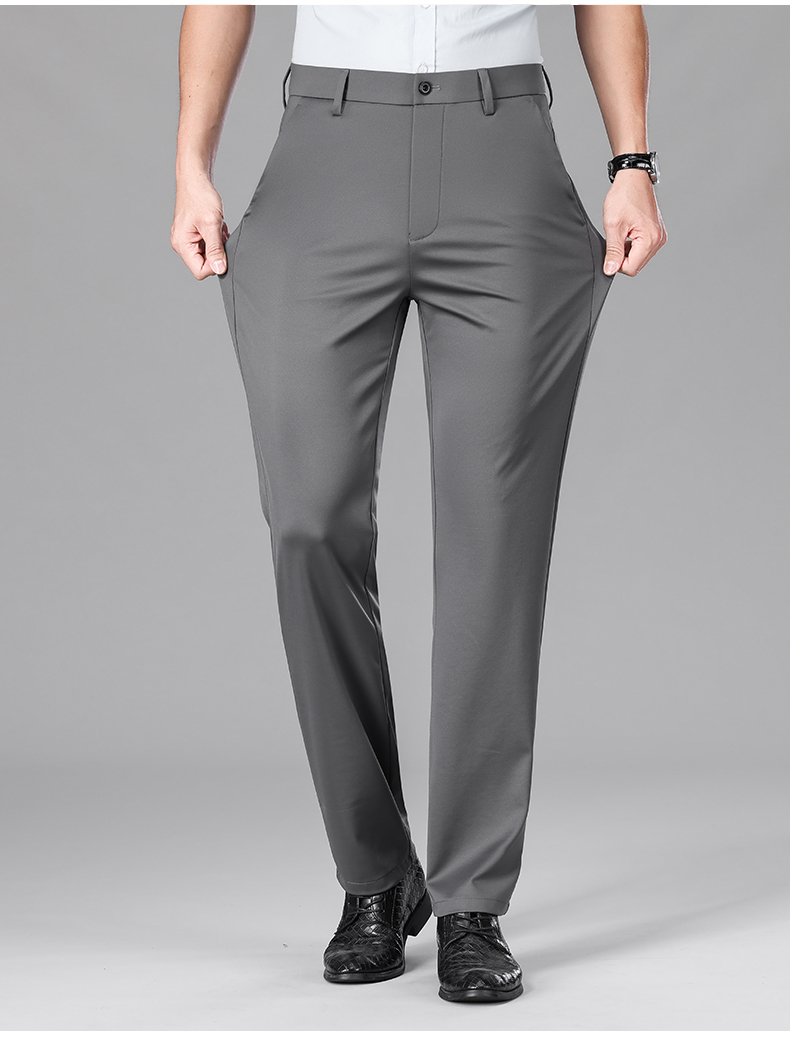 남성 비즈니스 바지 2025 여름 중년 얼음 실크 얇은 뽕나무 실크 캐주얼 바지 스트레치 비즈니스 스트레이트 바지스토어 가기