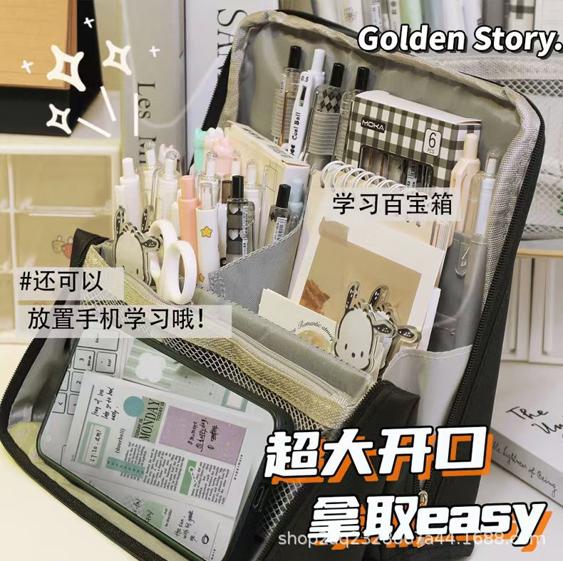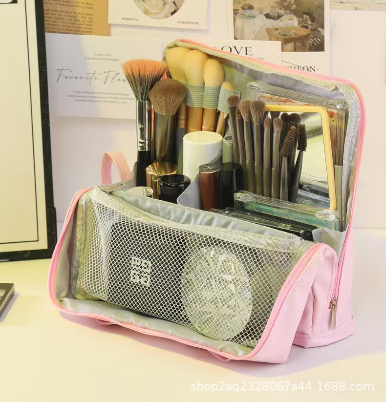 스탠드 업 화장품 가방 연필 케이스 남녀 대학생을위한 이중 사용 학습 용품 고 부가가치 한국 대용량스토어 가기