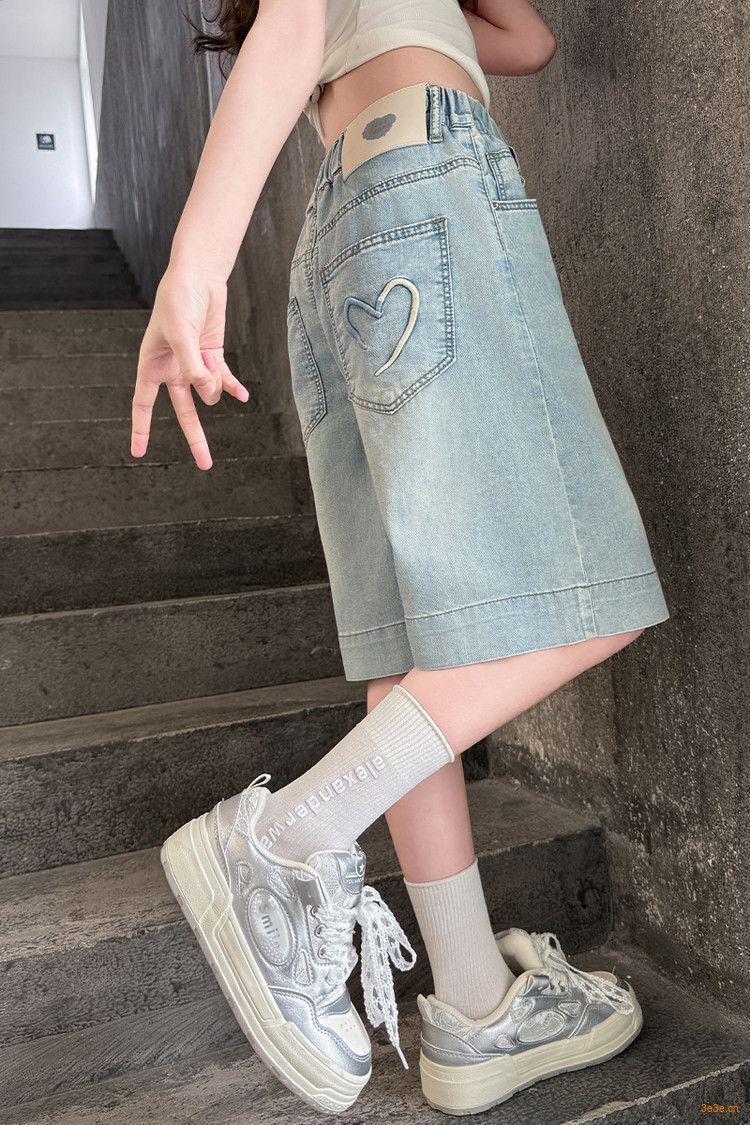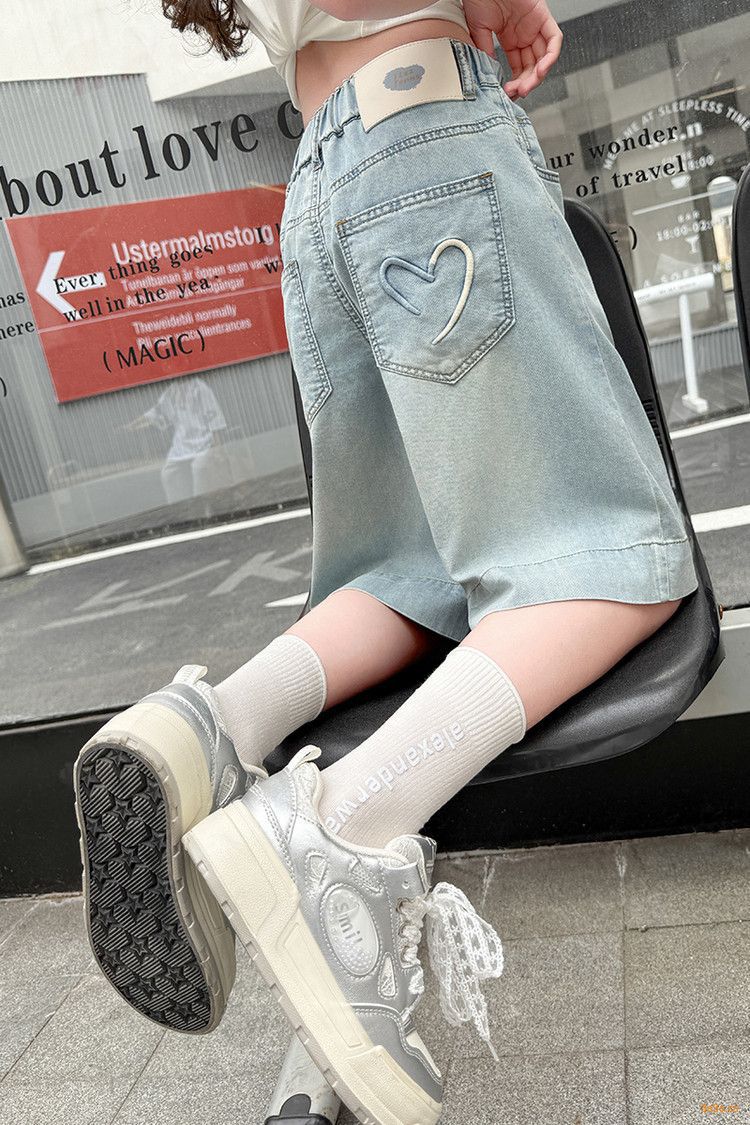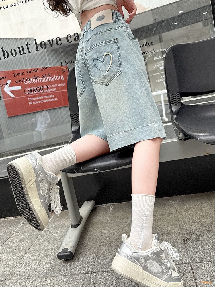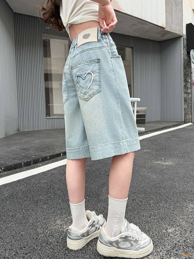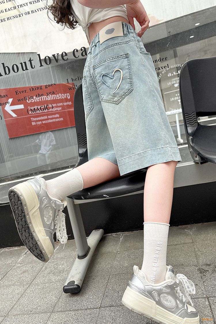 여자 여름 바지 2025 새로운 도착 포켓 사랑 바지 한국 스타일 자수 데님 바지스토어 가기