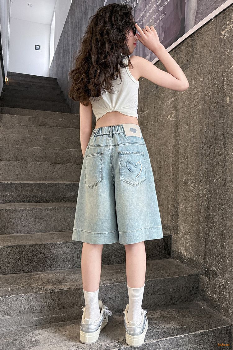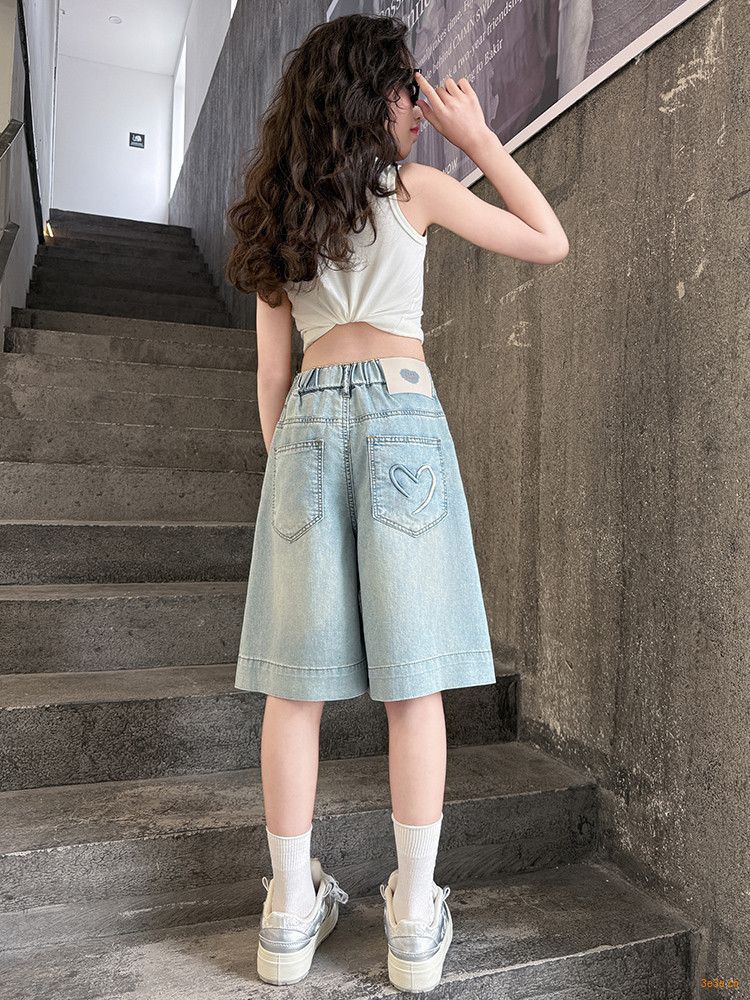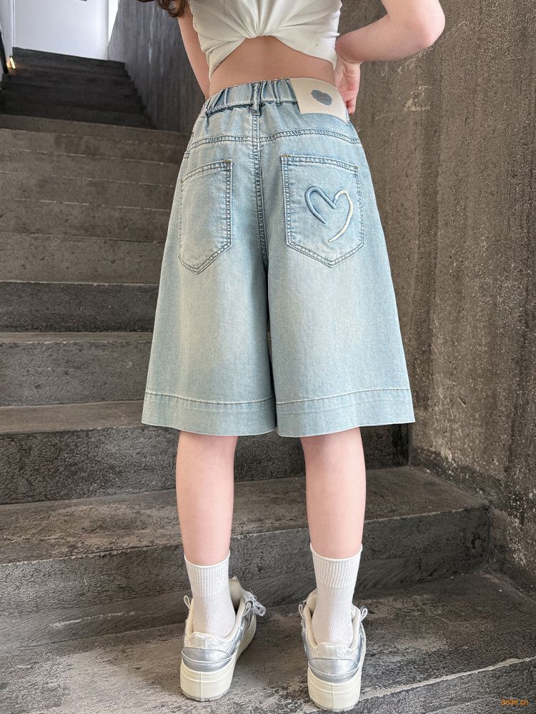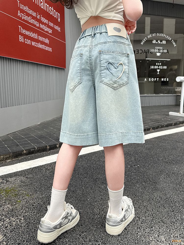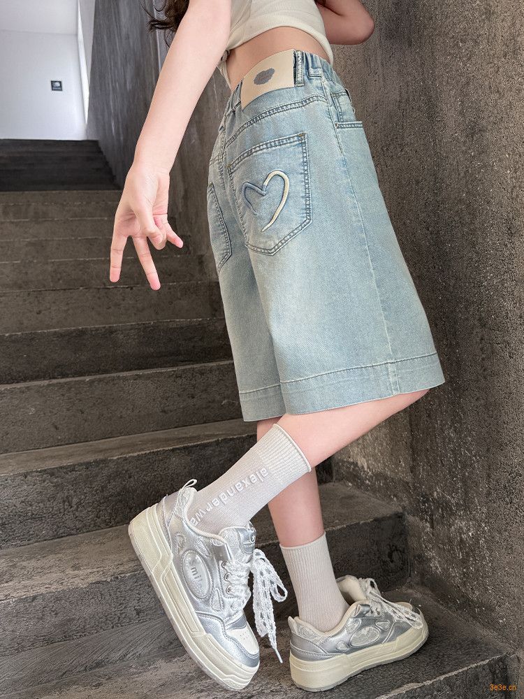 여자 여름 바지 2025 새로운 도착 포켓 사랑 바지 한국 스타일 자수 데님 바지스토어 가기