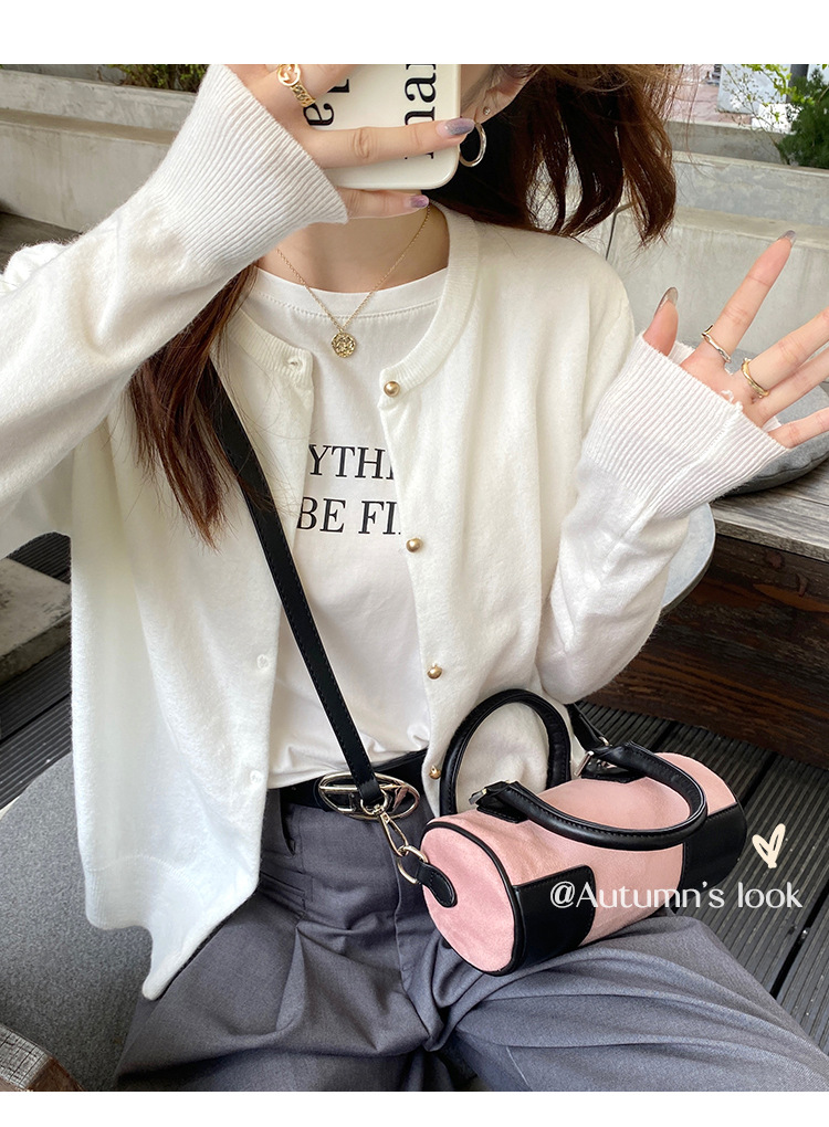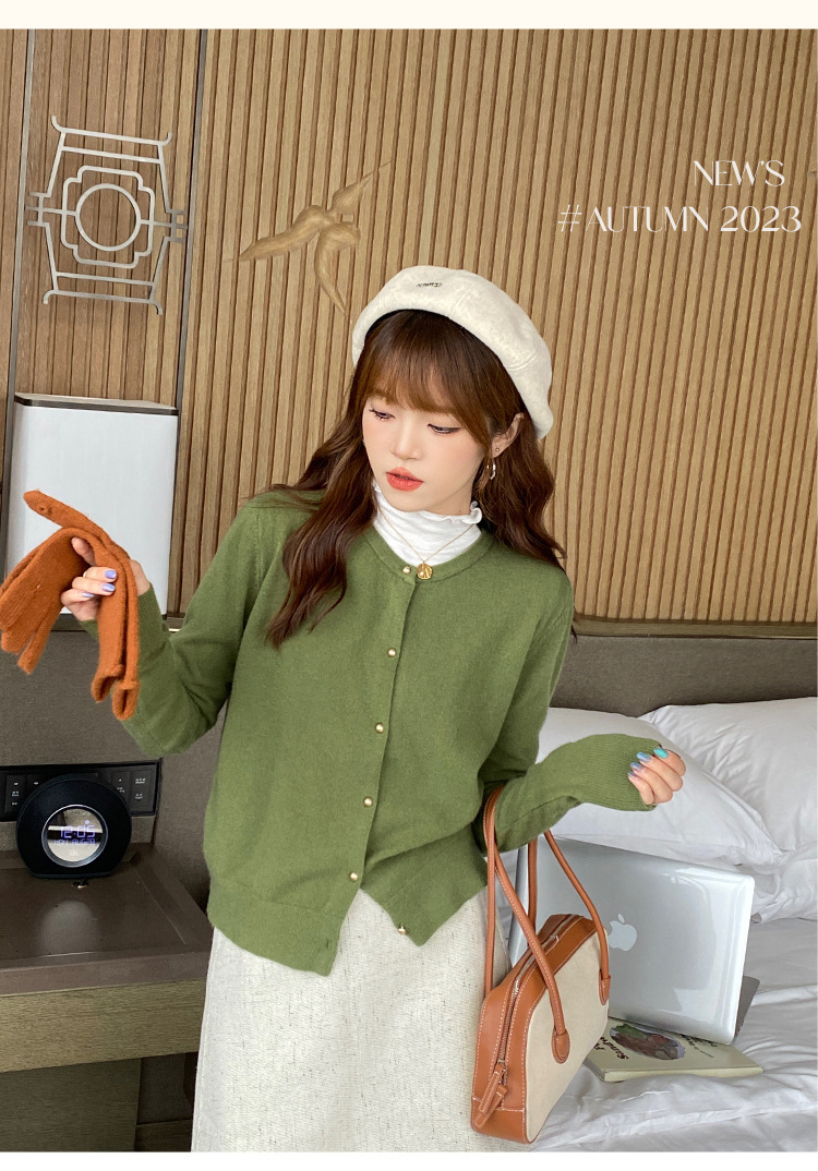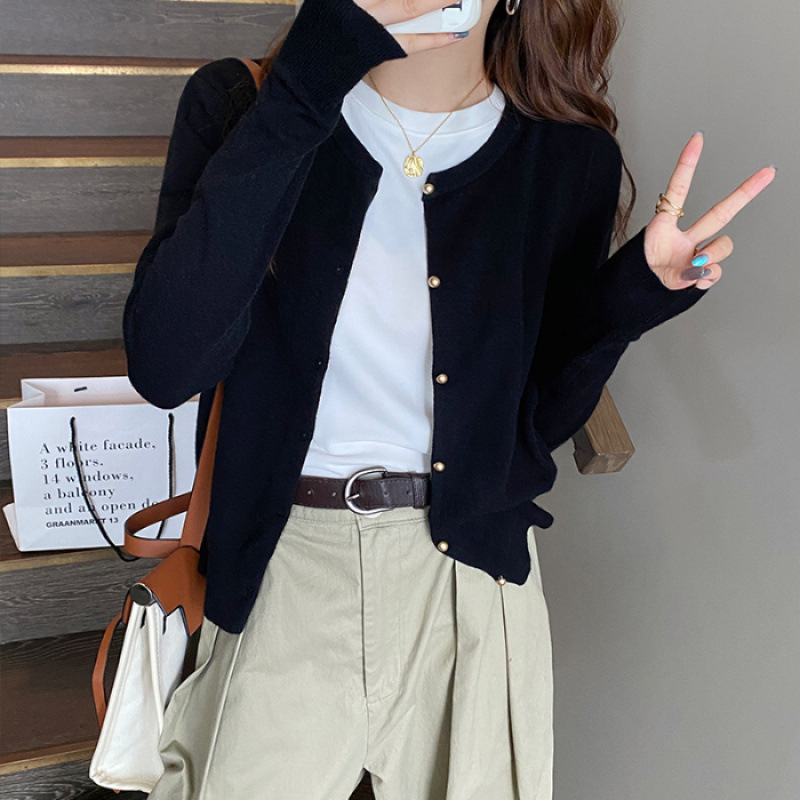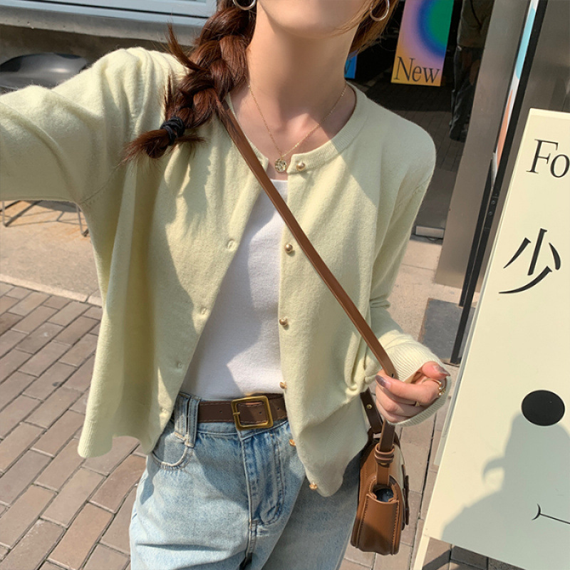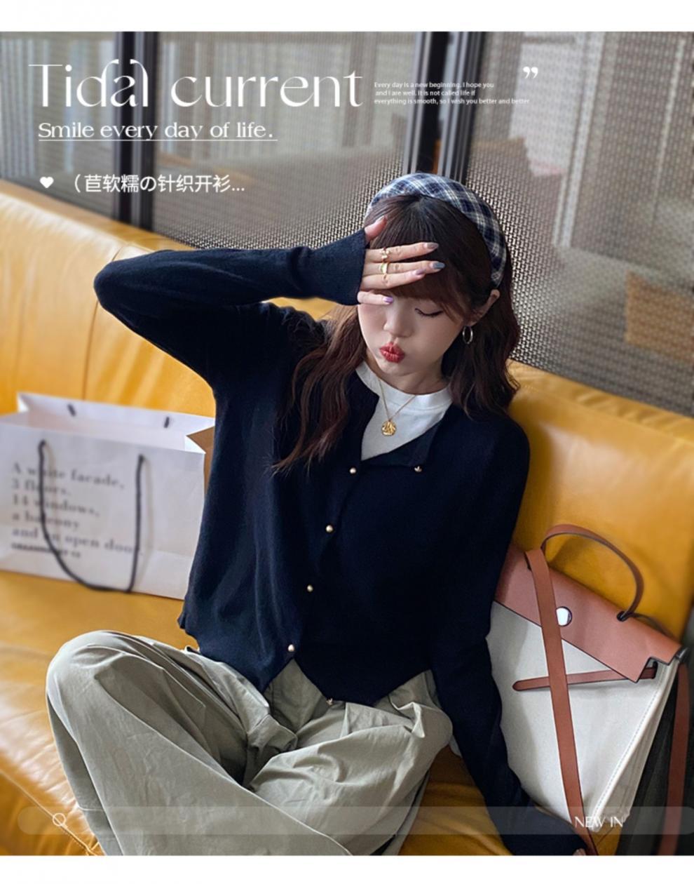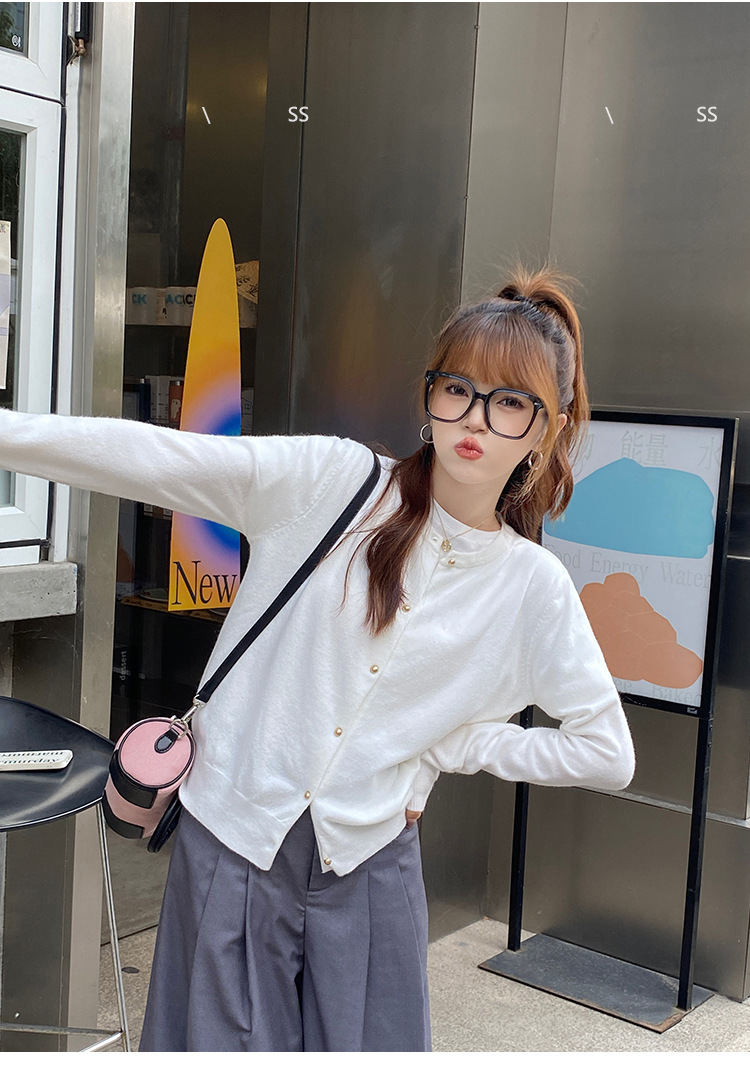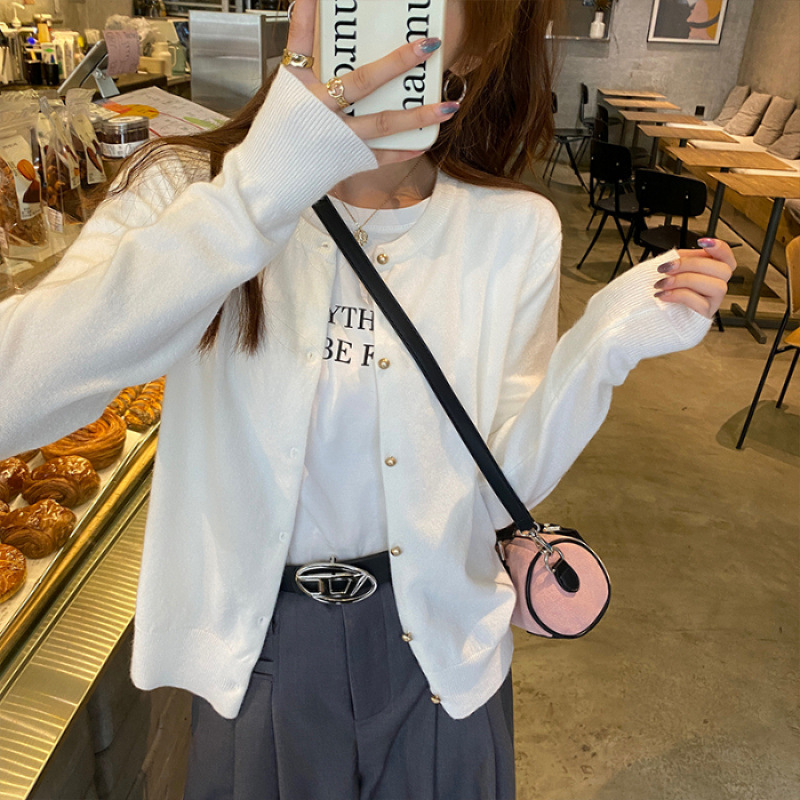 여성용 화이트 니트 가디건 재킷, 얇은 2025 이른 봄 신상 상의, 서스펜더 스커트가 있는 스몰 아우터 스웨터스토어 가기