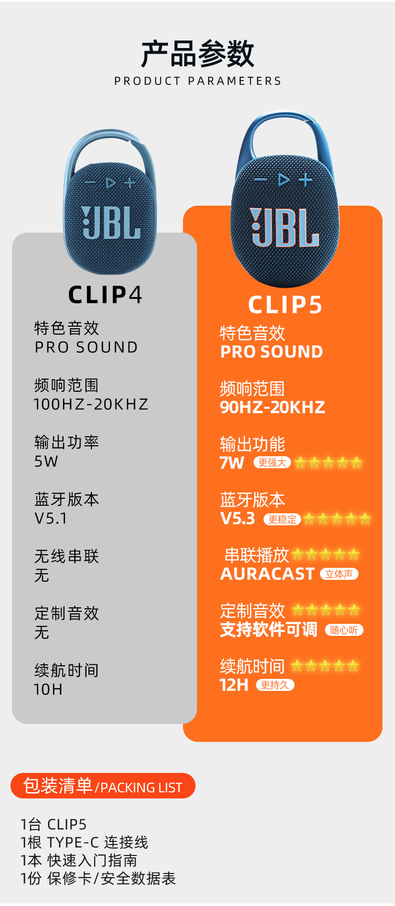 CLIP5 새로운 무선 블루투스 스피커 야외 캠핑 및 사이클링 방수 서브우퍼 시리즈 스피커 1대 1 코드스토어 가기