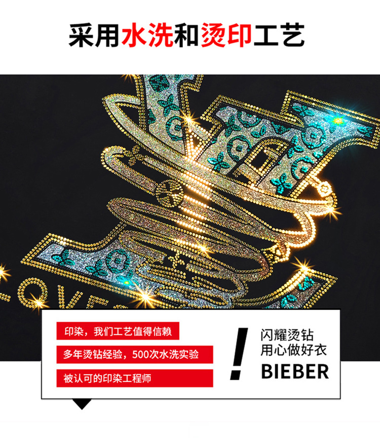 정품 럭셔리 빅 브랜드 남성용 핫 드릴링 반팔 티셔츠 하이 엔드 패션 브랜드 유럽 역 아이스 실크 유럽 상품 얇은 남성 여름복