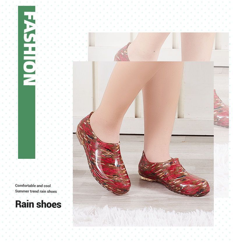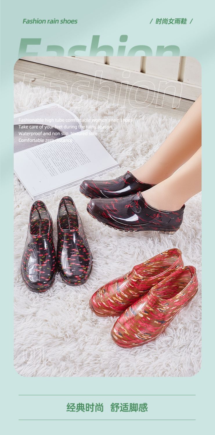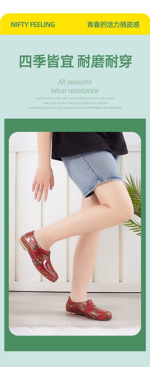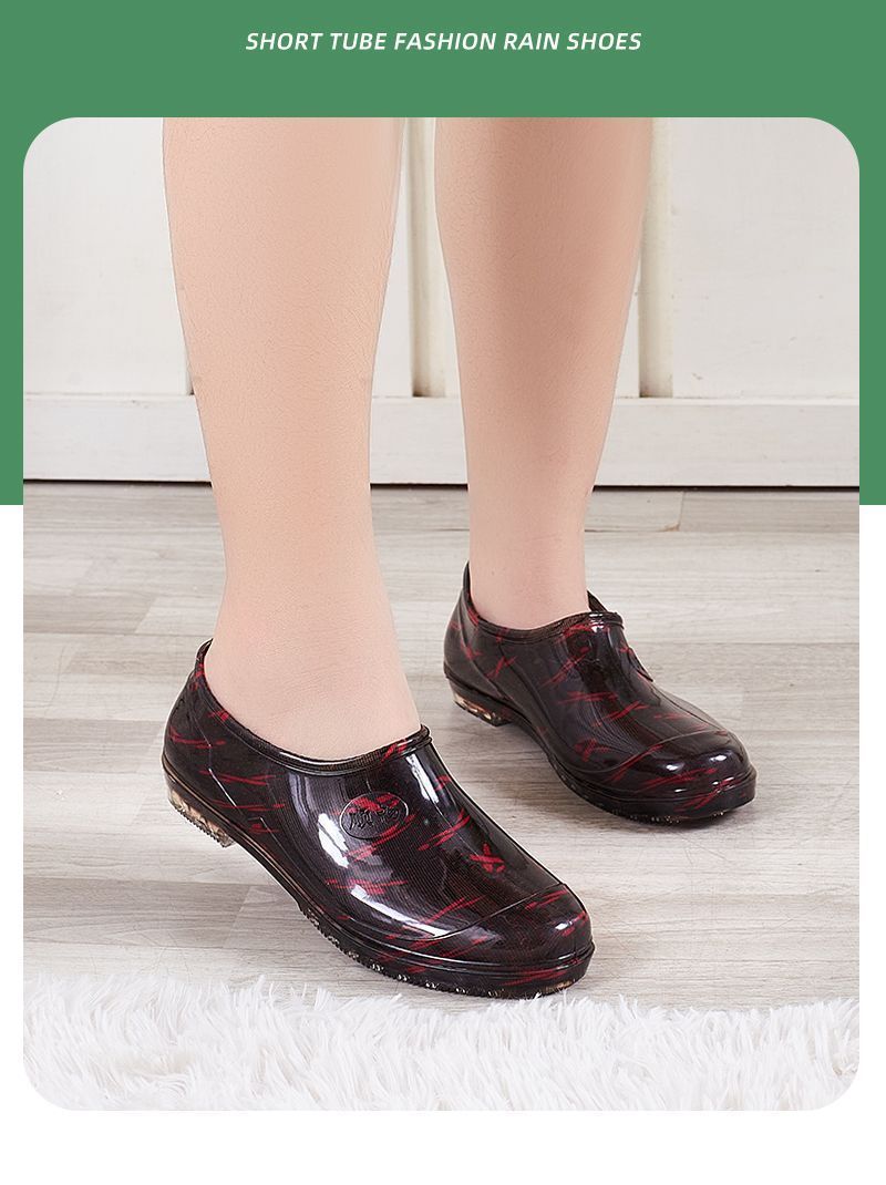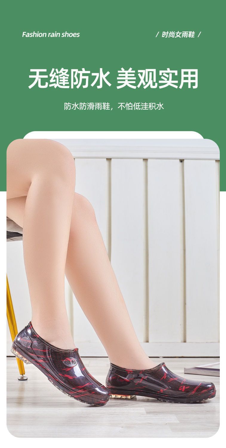 사계절용 여성용 로우탑 레인부츠, 미끄럼 방지 주방용 방수 물걸레, 플랫 고무신, 워터부츠