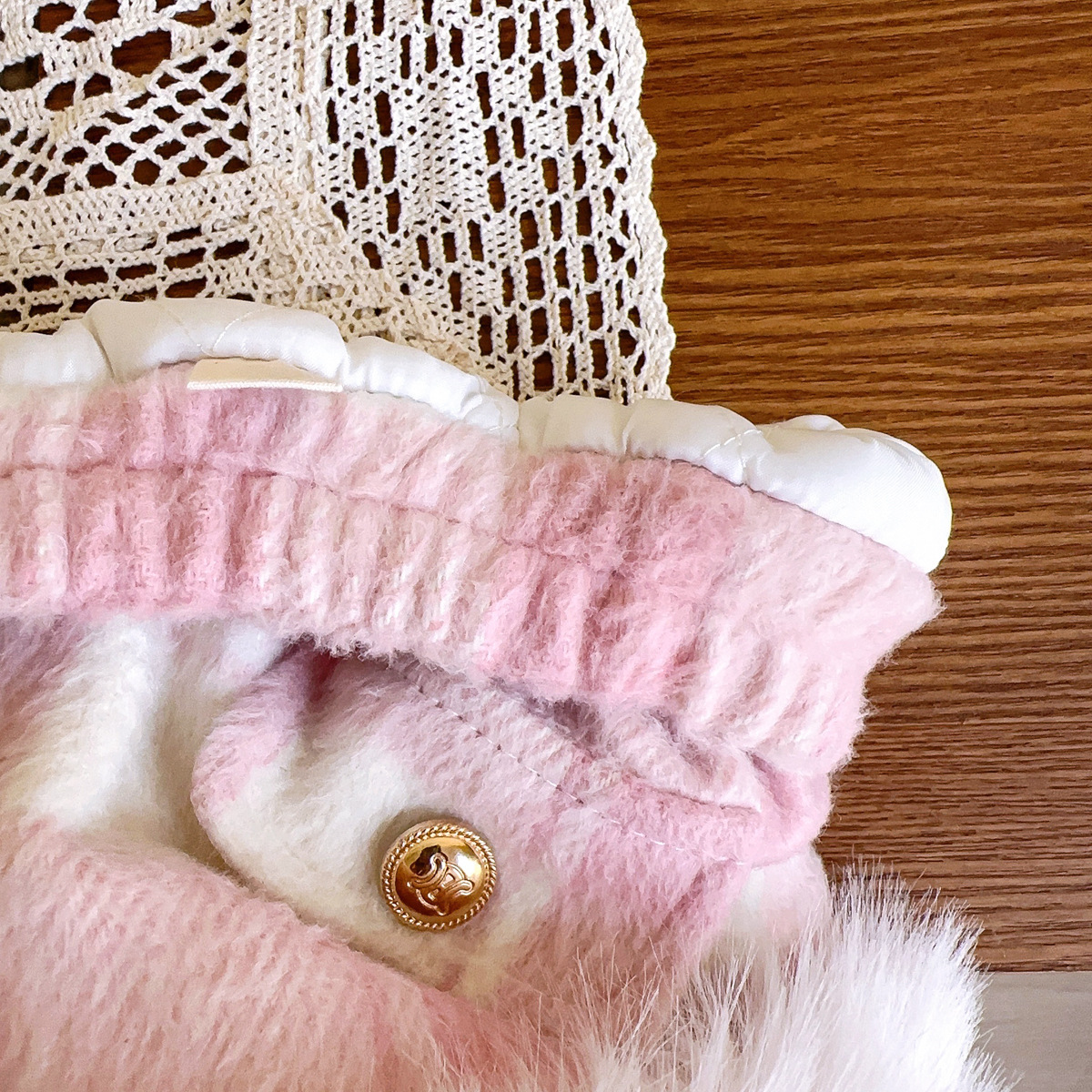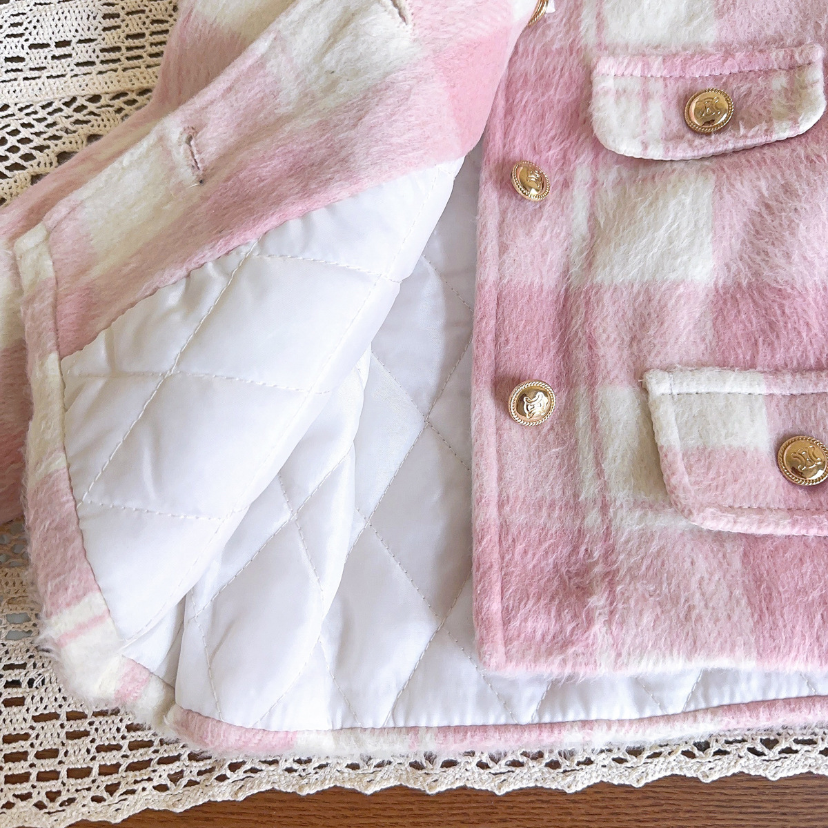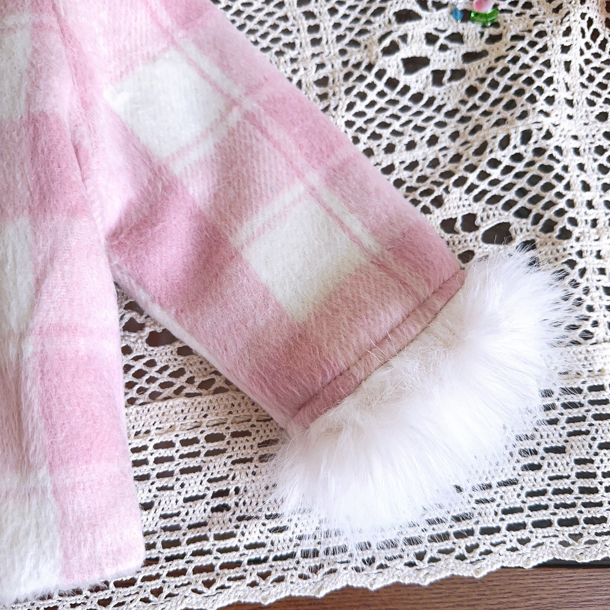2025 소녀 작은 향기 슈트 겨울 새로운 격자 무늬 복고풍 모피 가장자리 재킷 스커트 투피스 세트