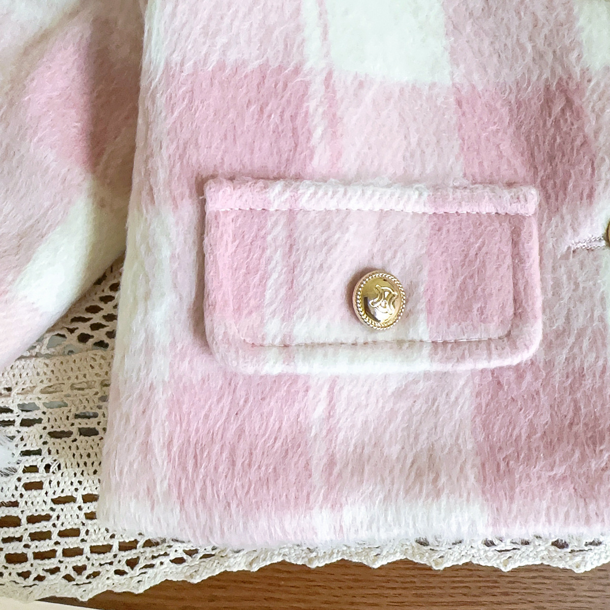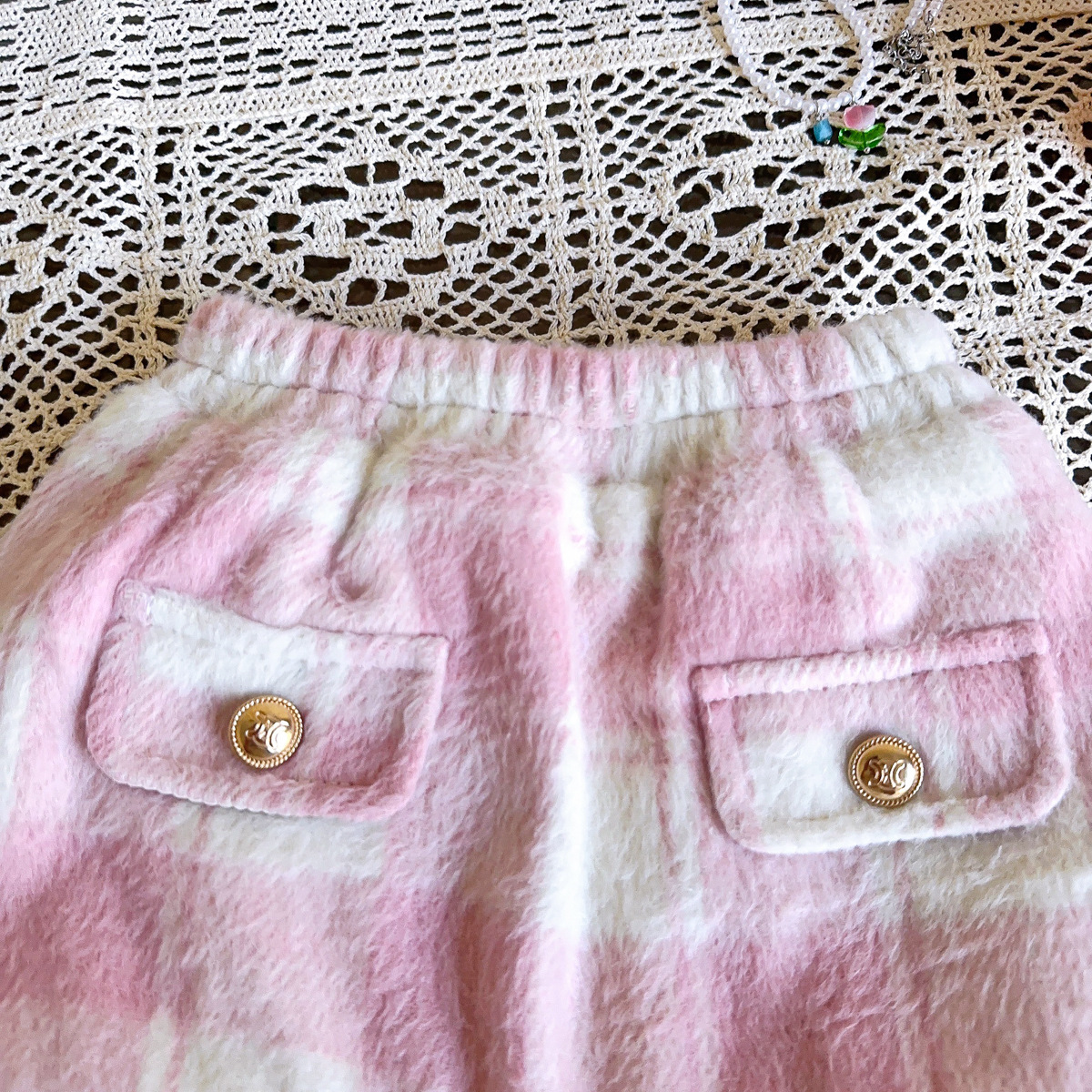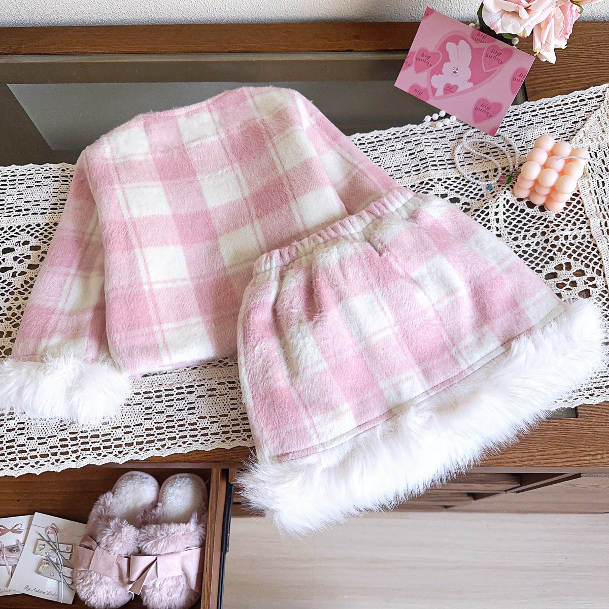 2025 소녀 작은 향기 슈트 겨울 새로운 격자 무늬 복고풍 모피 가장자리 재킷 스커트 투피스 세트스토어 가기