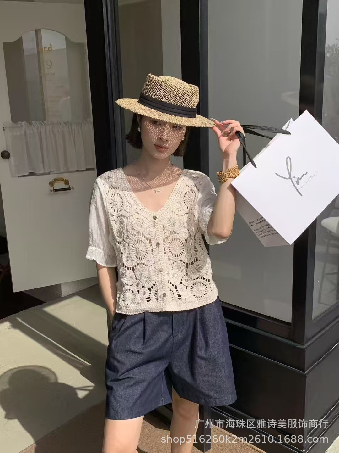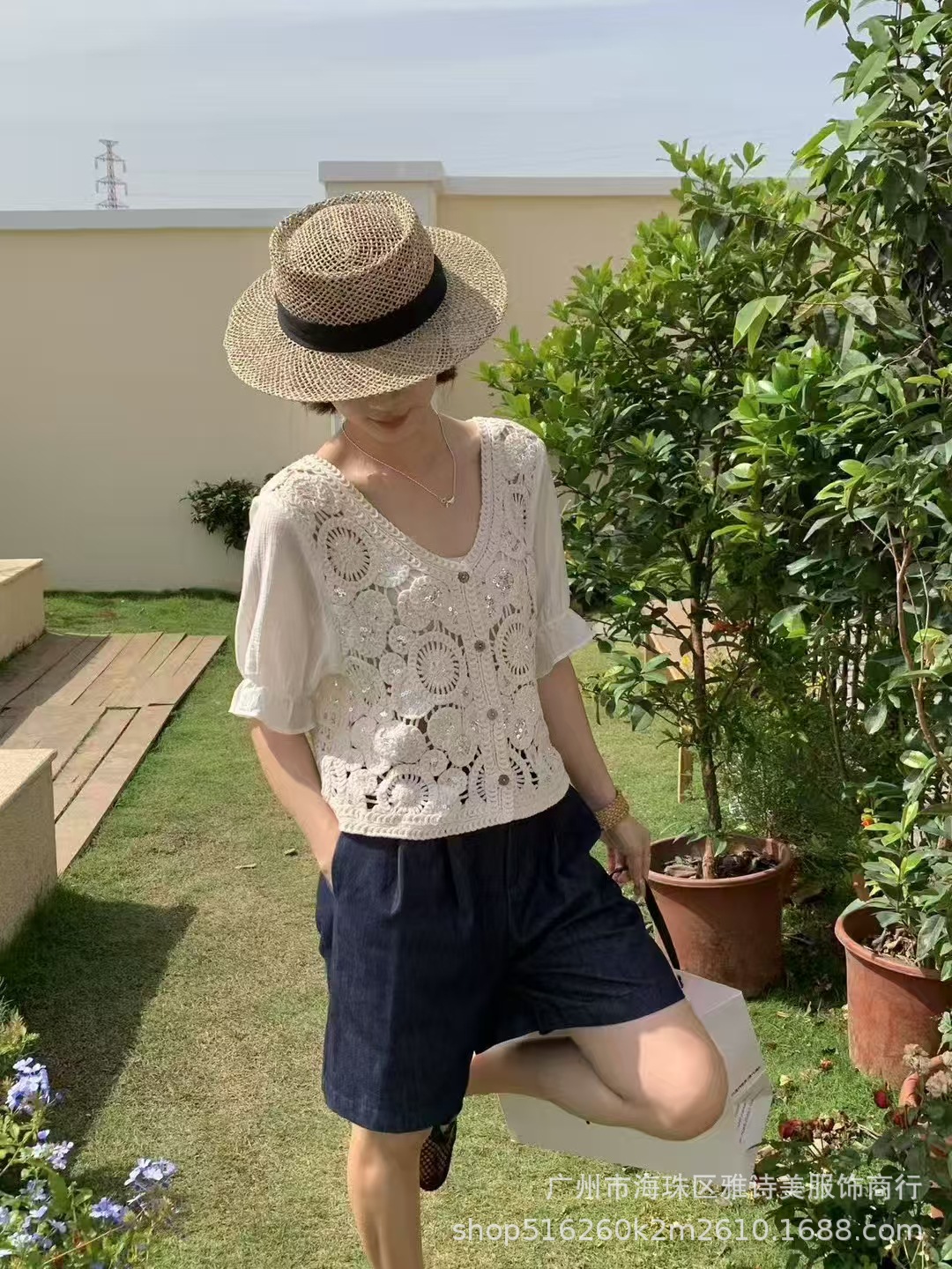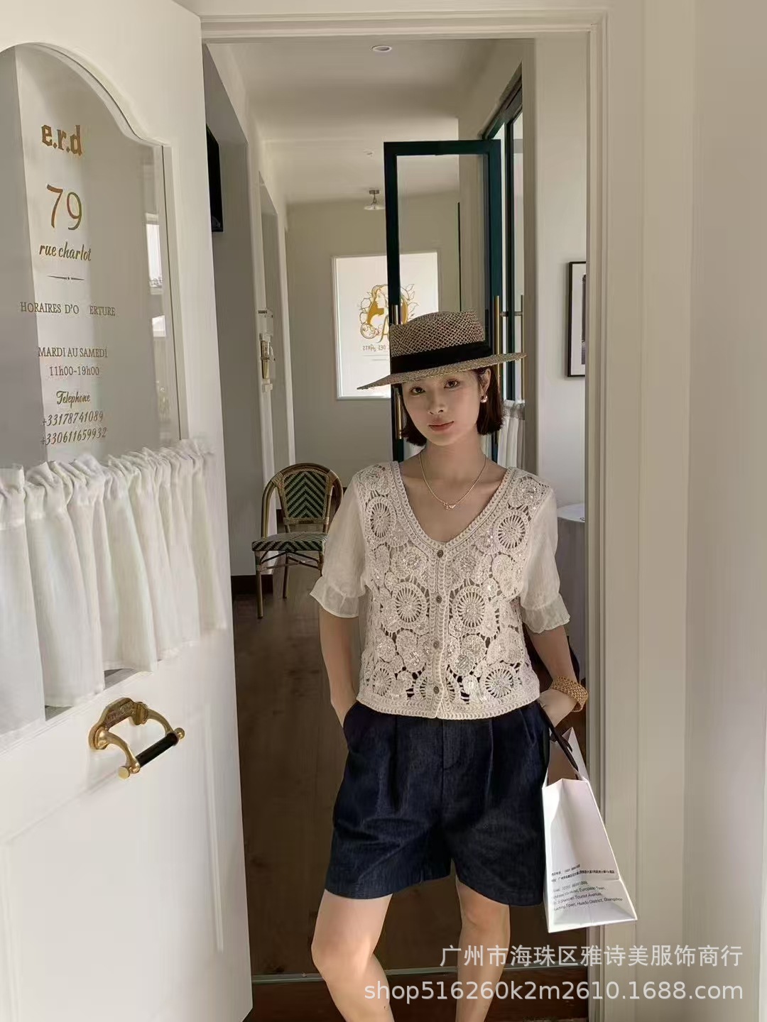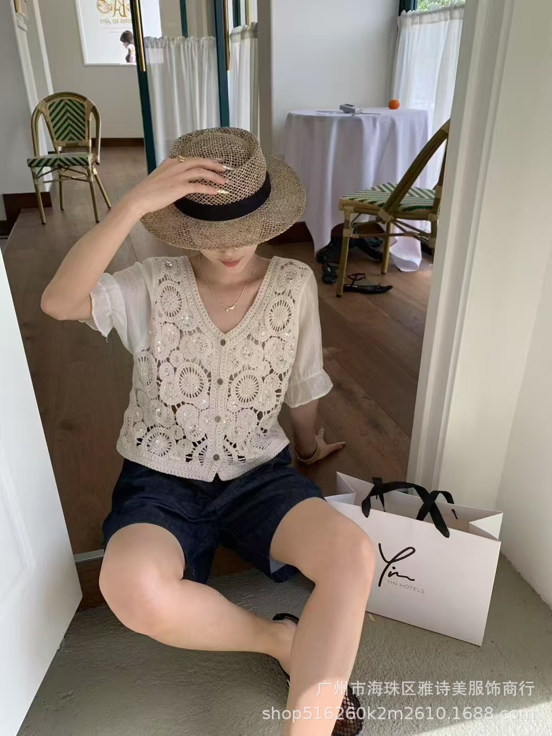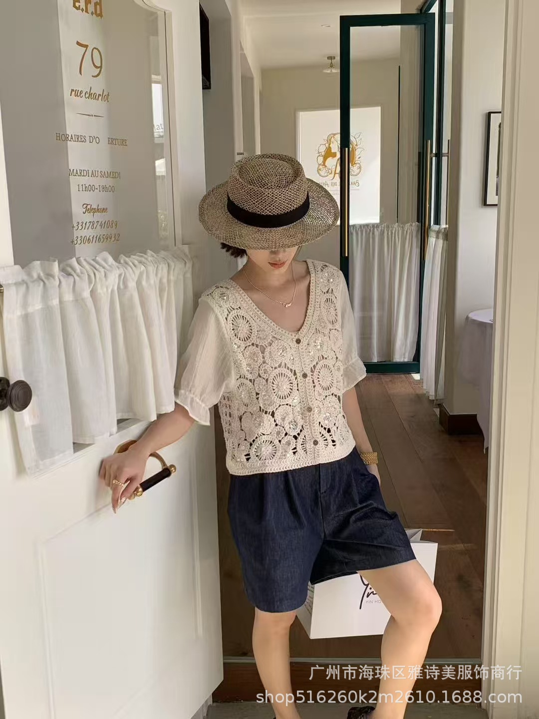 프랑스 중공업 빈티지 빈 구슬 세판 쉬폰 셔츠 여성의 새로운 스타일 샤넬 루즈 버블 슬리브 카디건 탑스토어 가기