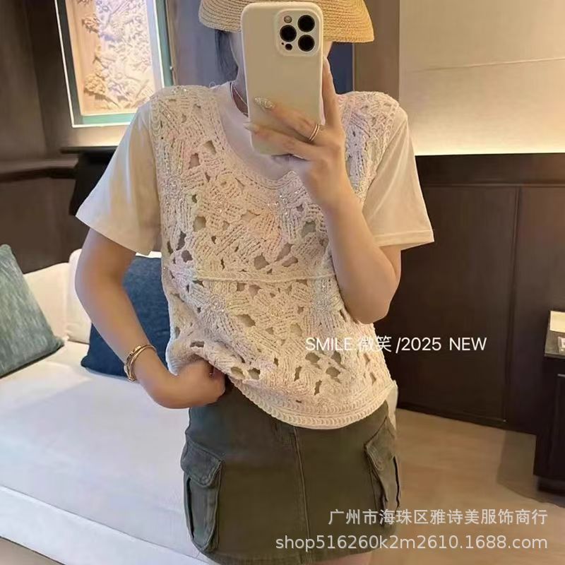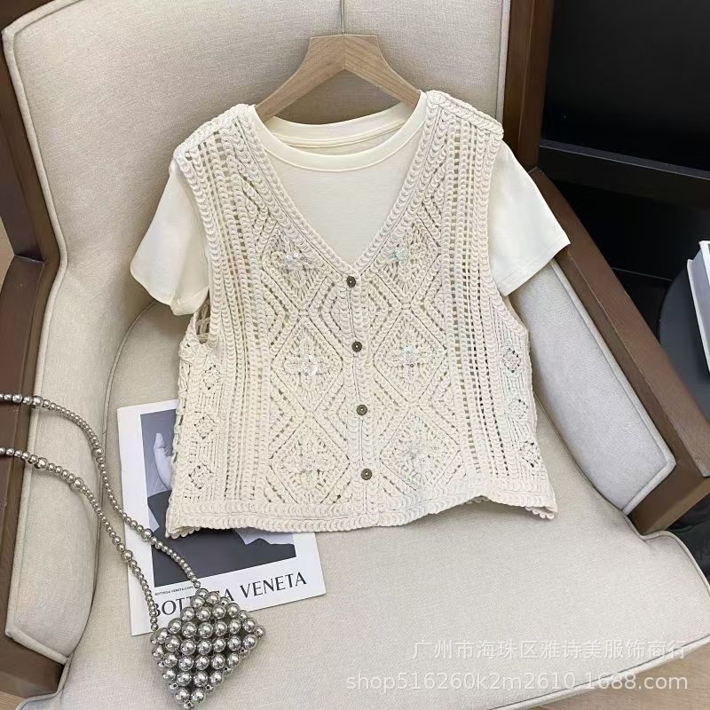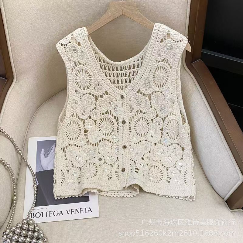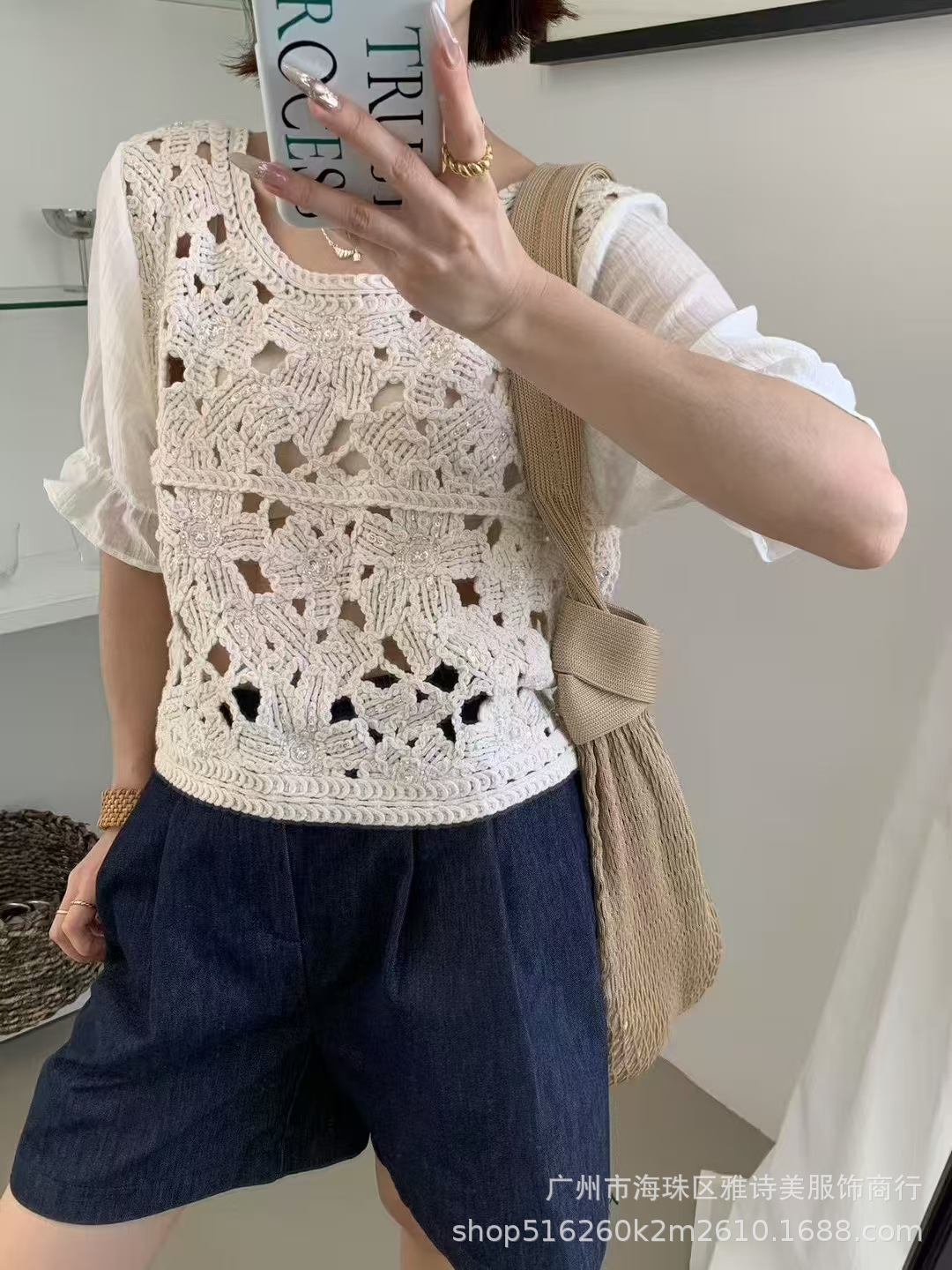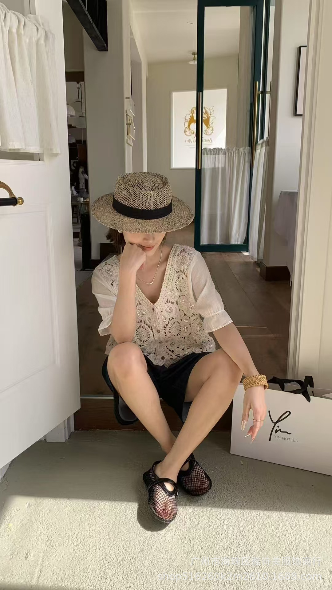 프랑스 중공업 빈티지 빈 구슬 세판 쉬폰 셔츠 여성의 새로운 스타일 샤넬 루즈 버블 슬리브 카디건 탑