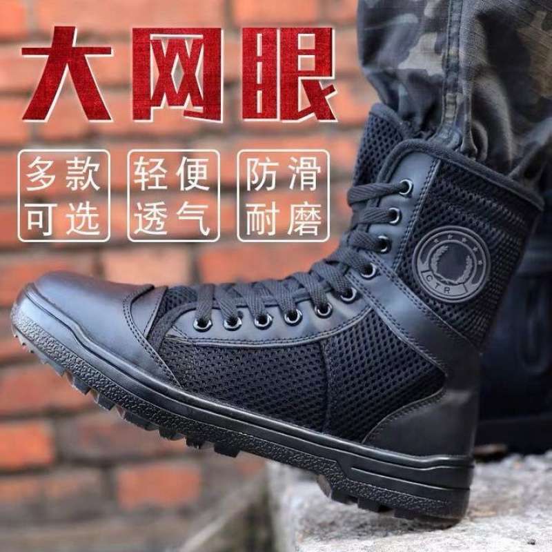 여름 통기성 특수 서비스 부츠 전투 부츠 블랙 트레이닝 신발 하이 탑 캔버스 메쉬 보안 신발 마틴 부츠스토어 가기