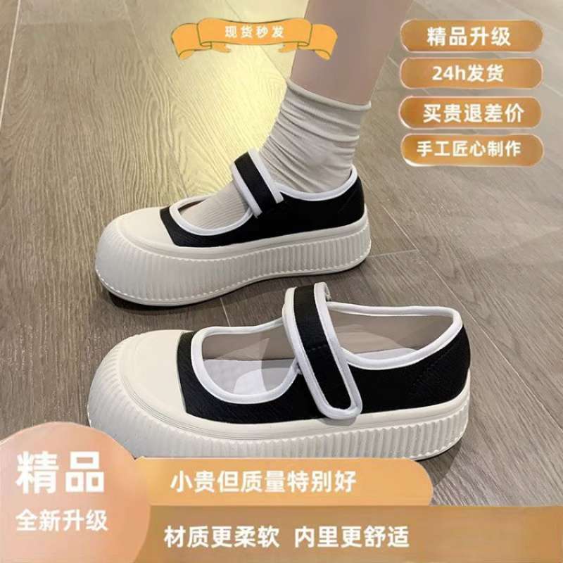 여성용 벨크로 화이트 슈즈 2025 뉴 메리 제인 레이지 슬립온 인 캐주얼 다용도 두꺼운 밑창 비스킷 슈즈스토어 가기
