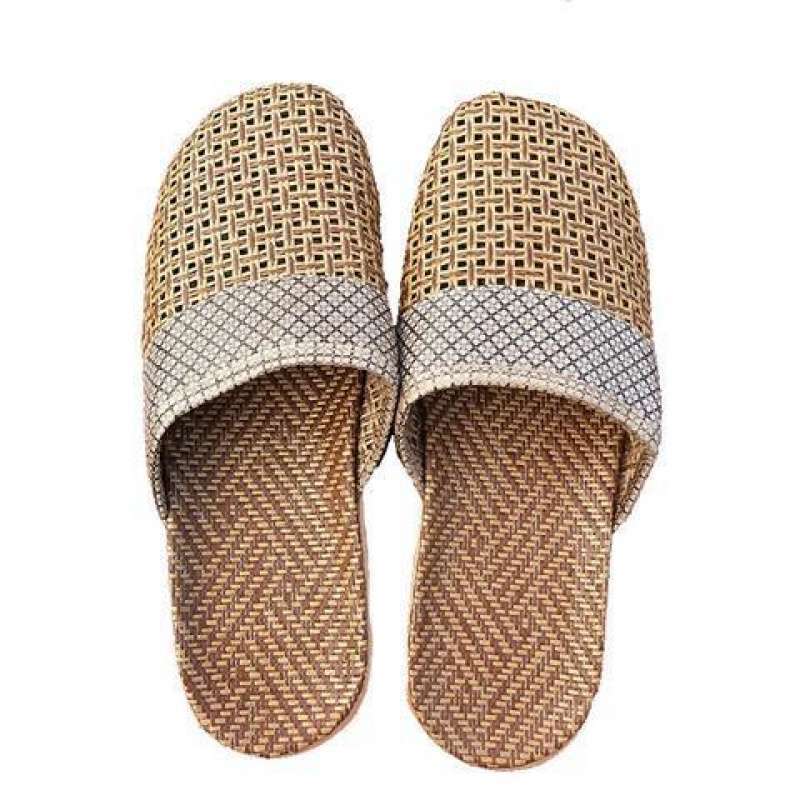 여성용 린넨 슬리퍼, 가정용 등나무로 짠 사무실 미끄럼 방지 바닥 매트, 남성용 여름용 발가락 샌들