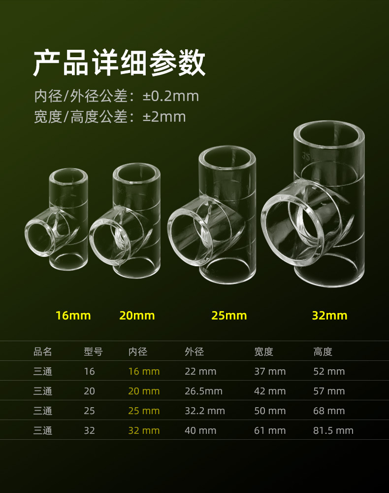 3방향 수조 투명 수도관 아크릴 파이프 피팅 바닥 필터 하단 필터 하드 파이프 수족관 상부 및 하부 수도 액세서리 20/25스토어 가기