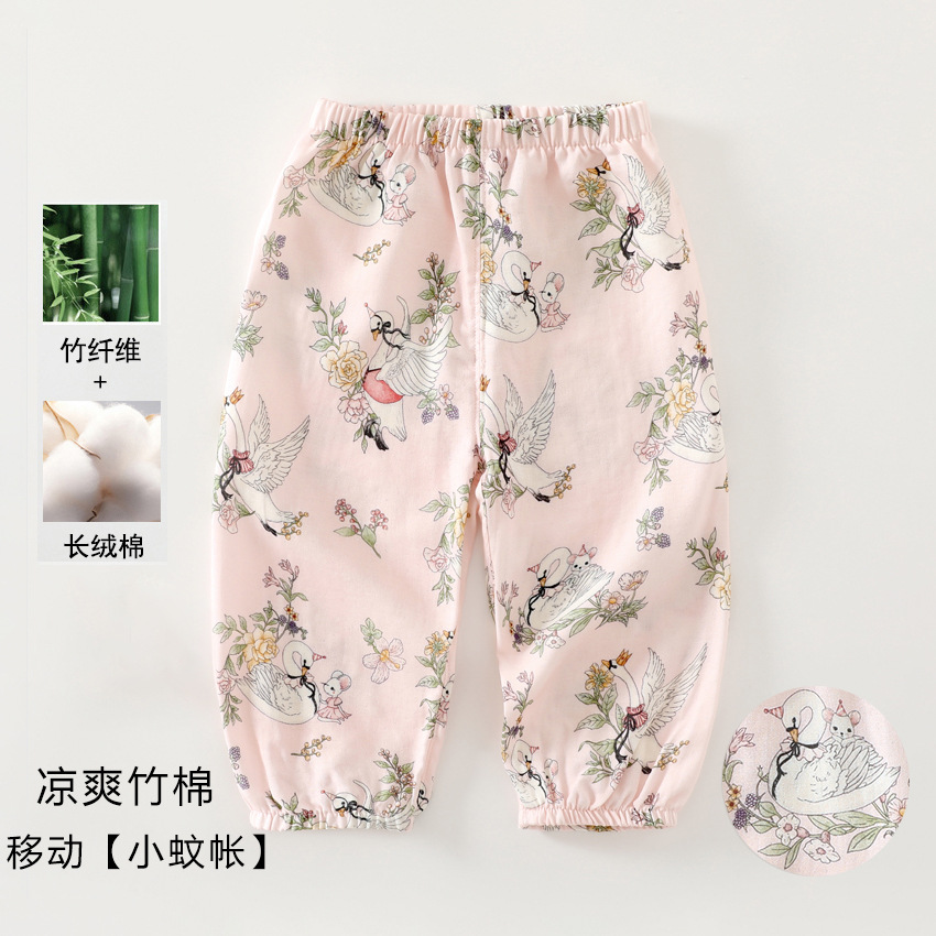 여름 아기 모기 방지 바지 어린이 블루머 바지 얇은 인쇄 소년과 소녀 캐주얼 바지 모기 방지 바지