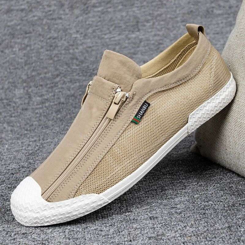 2025 여름 남성 신발 슬립 온 메쉬 캐주얼 신발 올매치 트렌디 신발 남성 통기성 캔버스 신발 스니커즈 플랫 슈즈스토어 가기