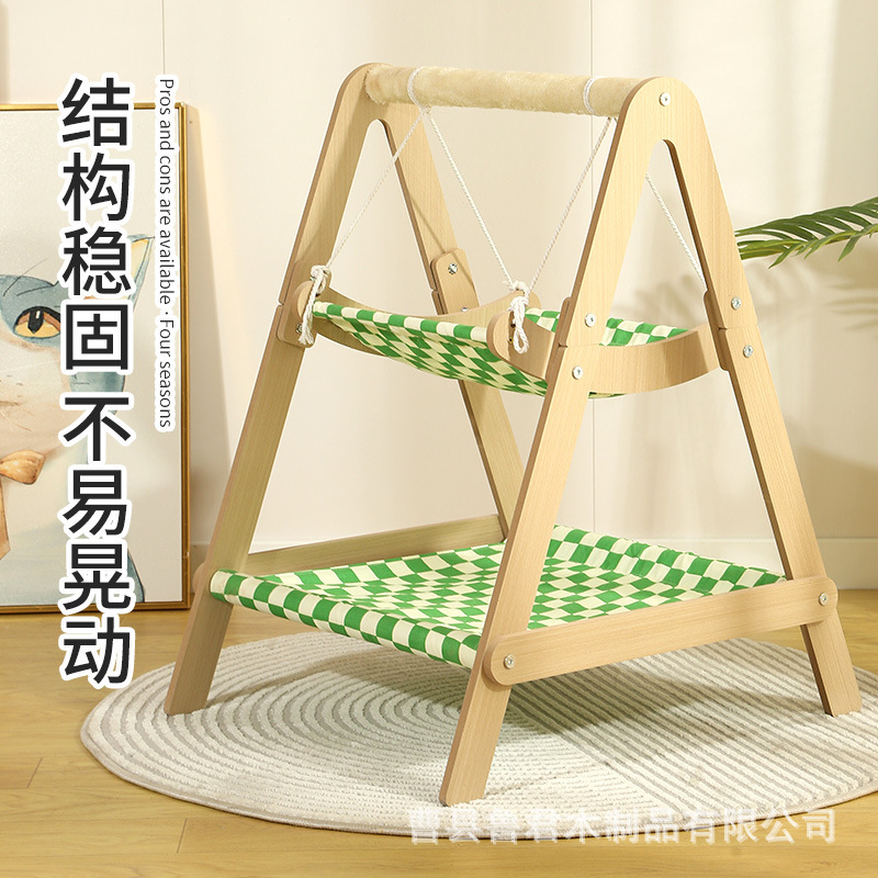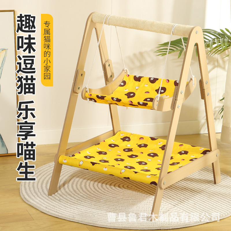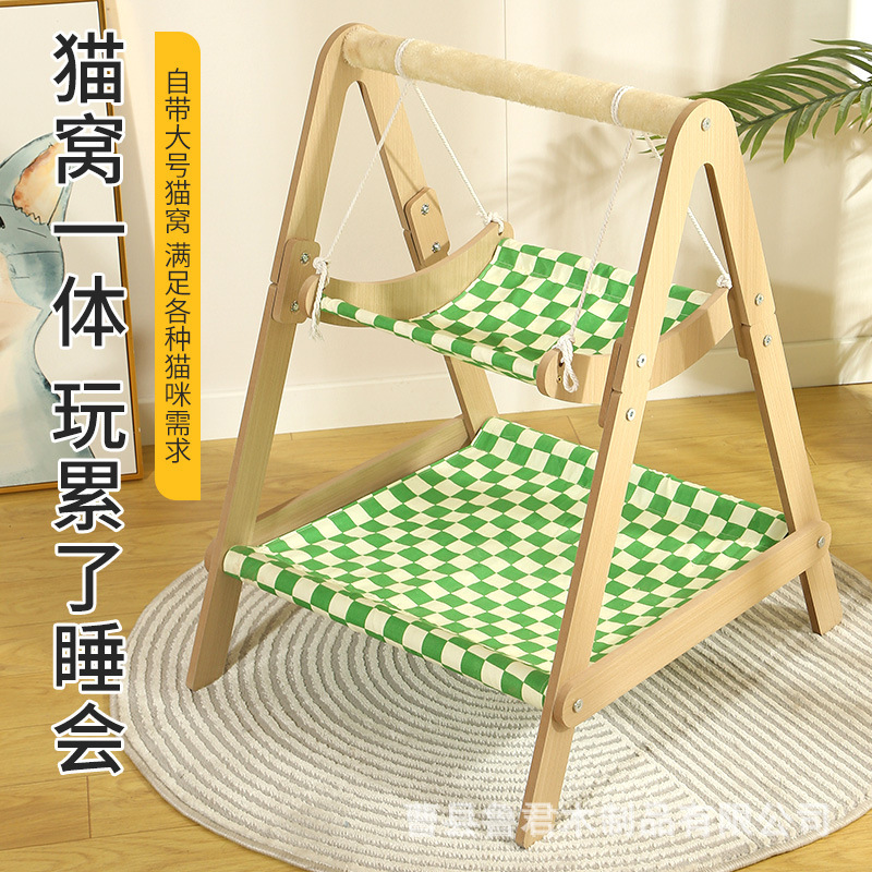 이중층 목재 셰이커 고양이 둥지 및 클라이밍 프레임 일체형 둥지 전복 방지 스윙 걸이형 애완동물 해먹 고양이 침대 고양이 스윙스토어 가기