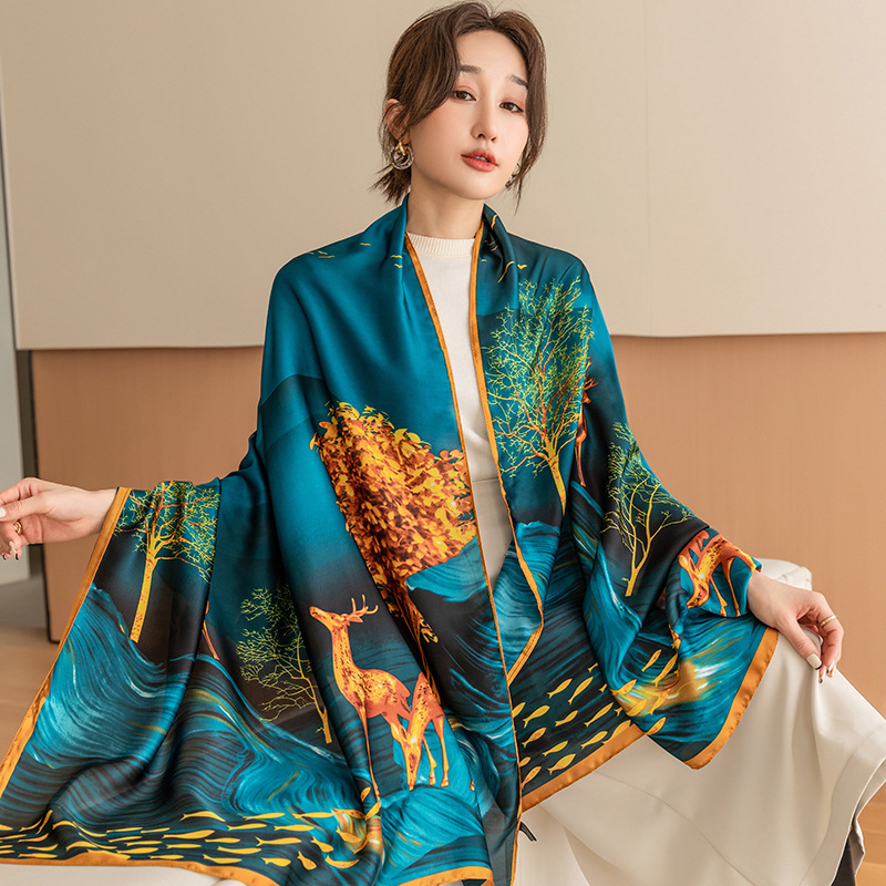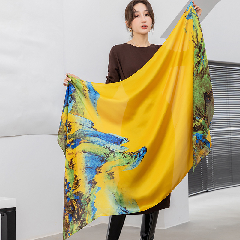 여성을위한 새로운 브로케이드 모조 실크 사진 여행 스카프 사막 해변 태양 보호 따뜻한 다기능 목도리 스카프스토어 가기