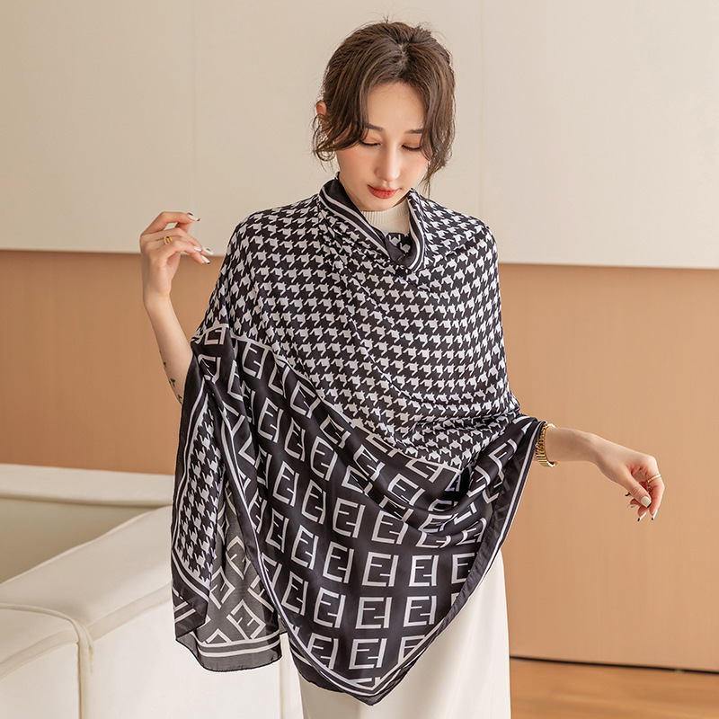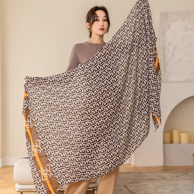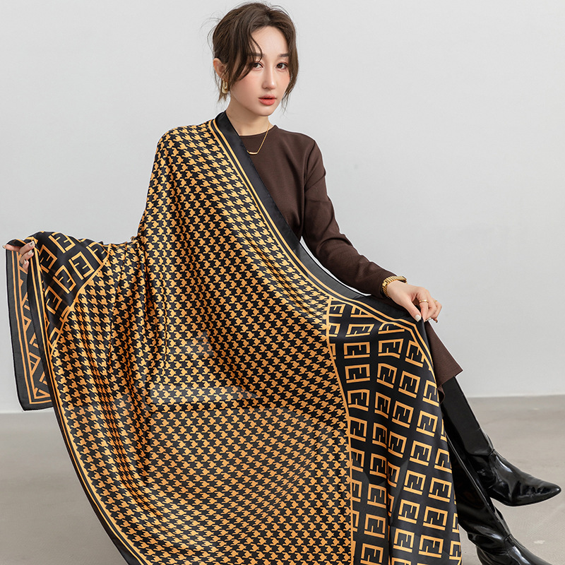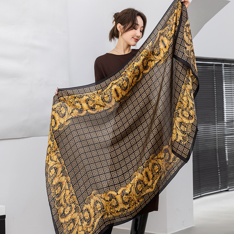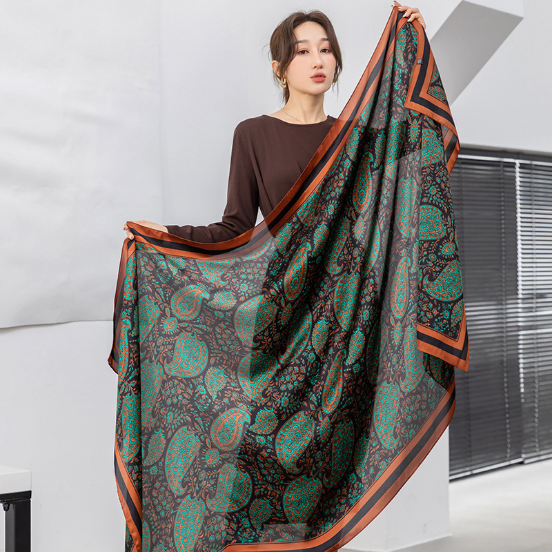 여성을위한 새로운 브로케이드 모조 실크 사진 여행 스카프 사막 해변 태양 보호 따뜻한 다기능 목도리 스카프