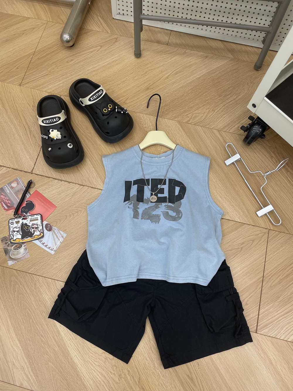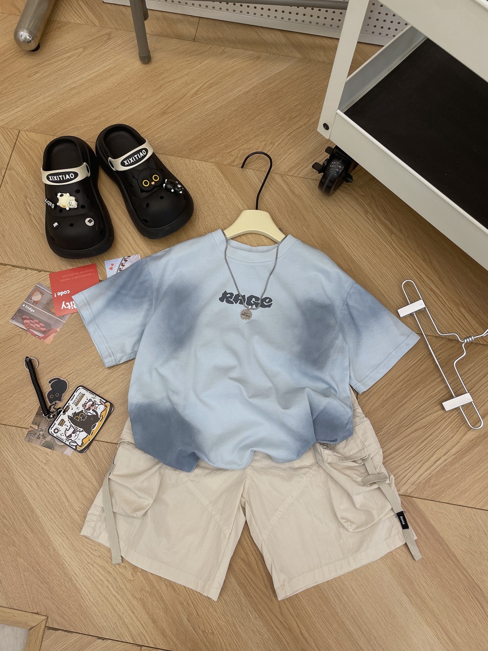 리본 작업복 바지 여름 얇은 2025 새로운 어린이 느슨한 서양식 5 점 바지 소년을위한 올매치 트렌디 바지스토어 가기