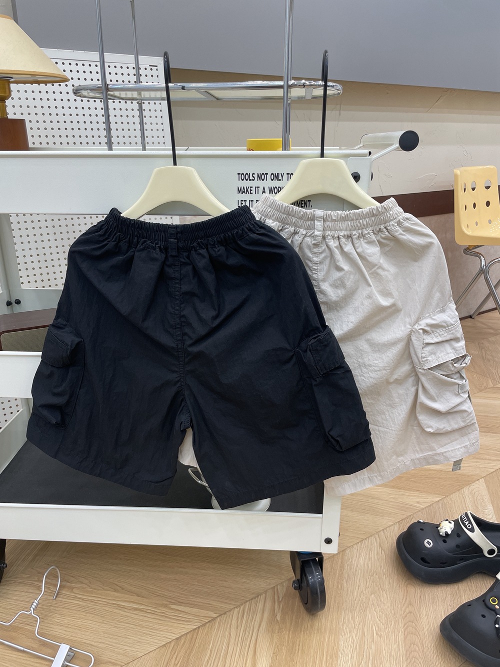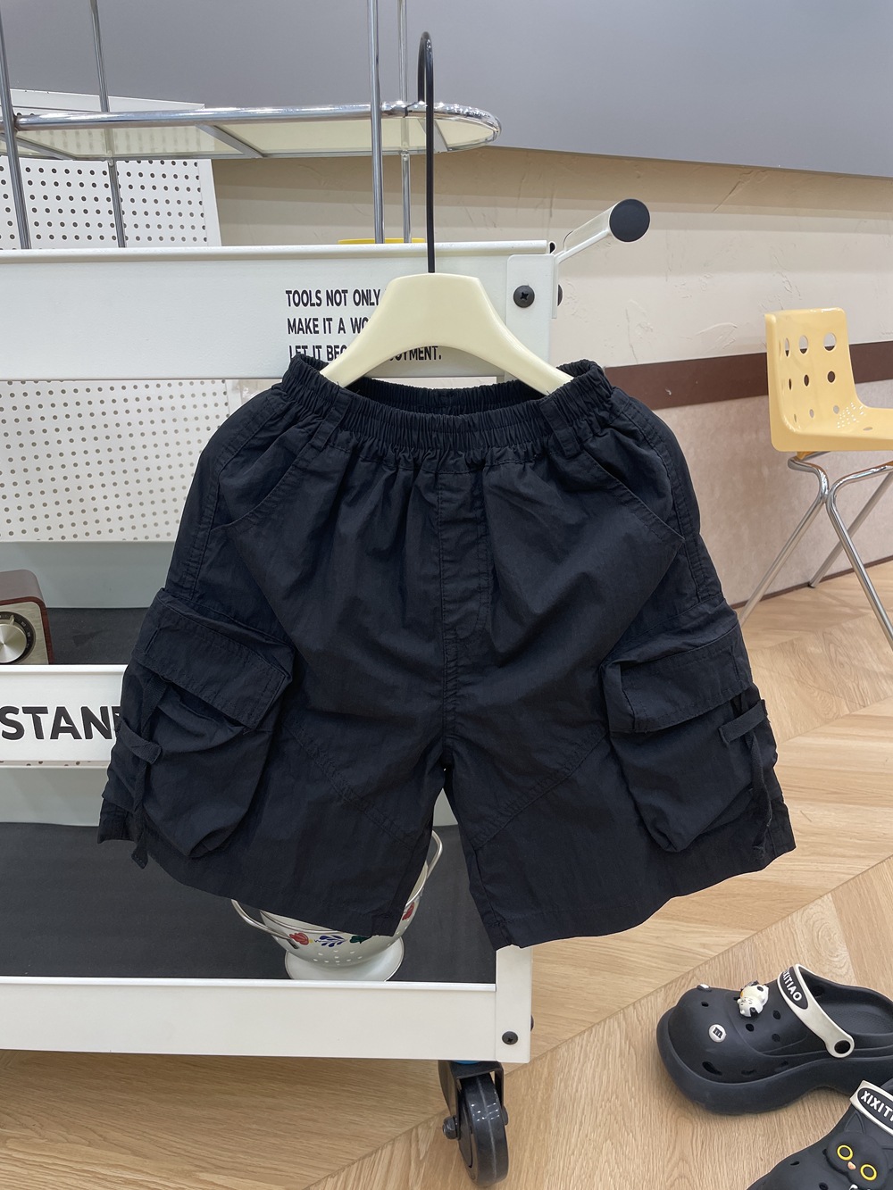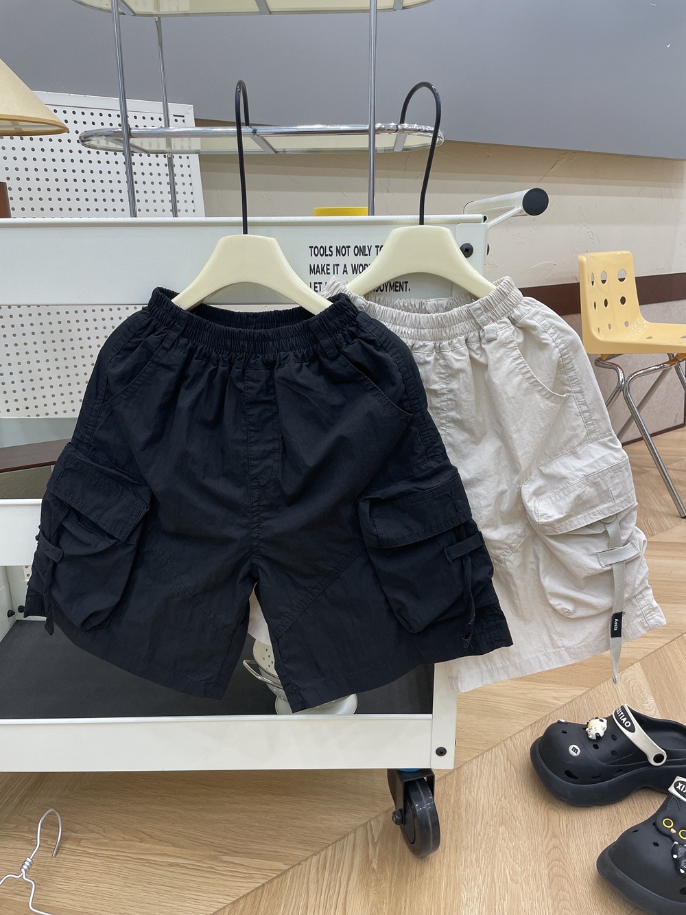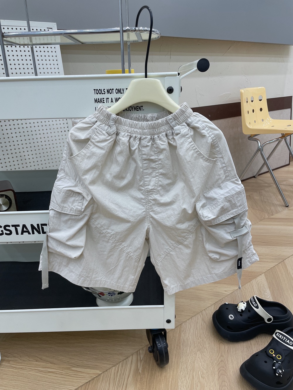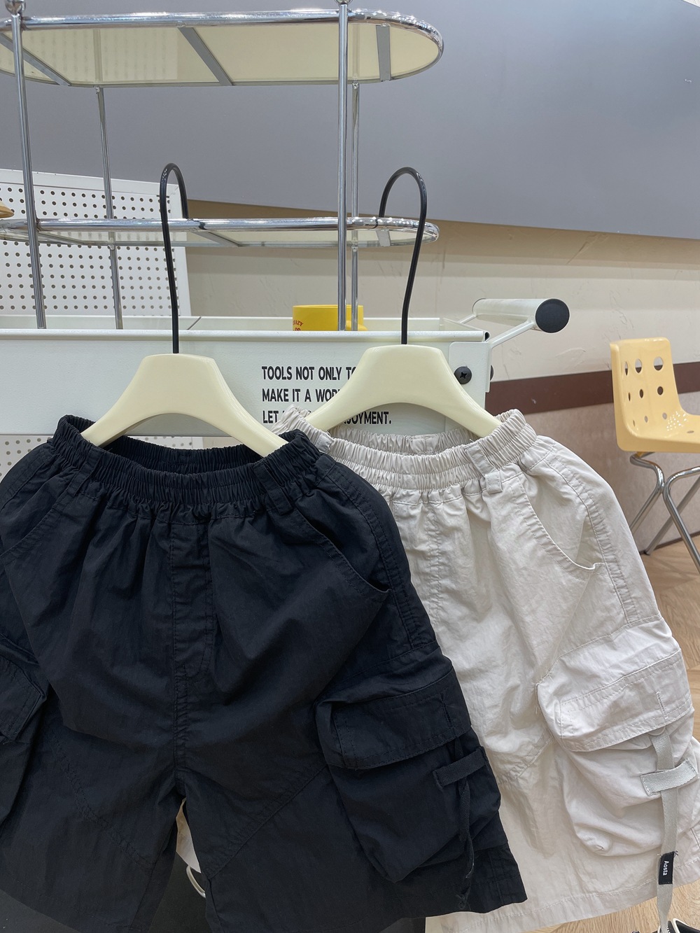 리본 작업복 바지 여름 얇은 2025 새로운 어린이 느슨한 서양식 5 점 바지 소년을위한 올매치 트렌디 바지