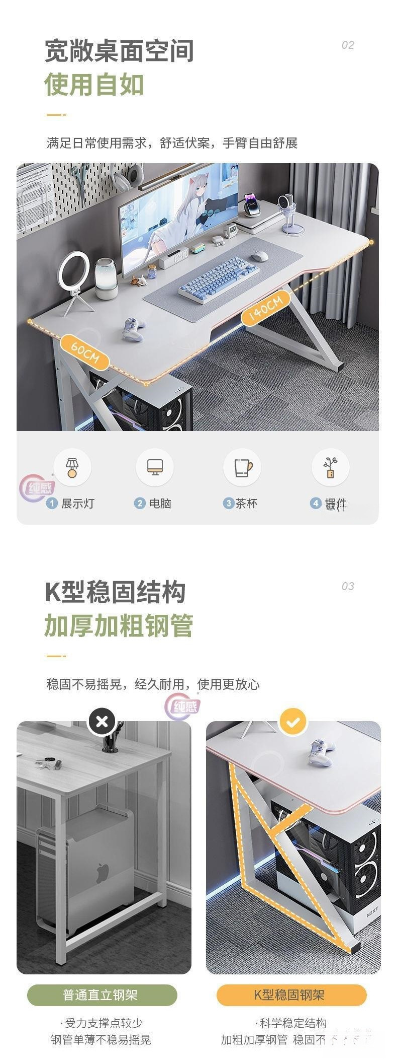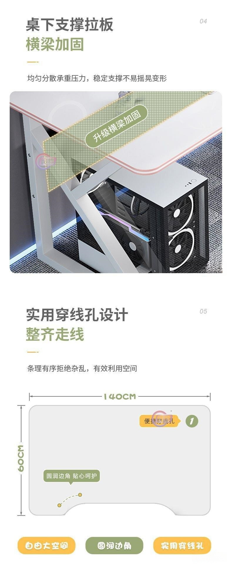 • [안정적인 K다리] 140CM 화이트 + 컴퓨터 의자✦★