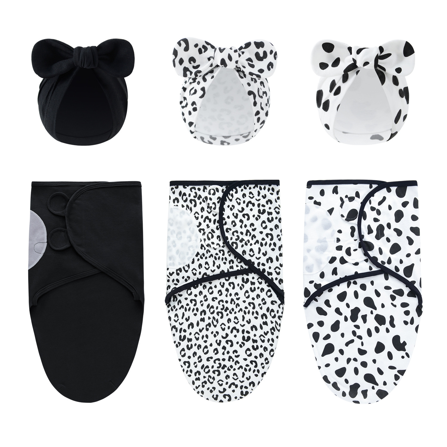 • 블랙 + 스팟 + 블랙 팬더 패턴 (스와들 + 라운드 씰)