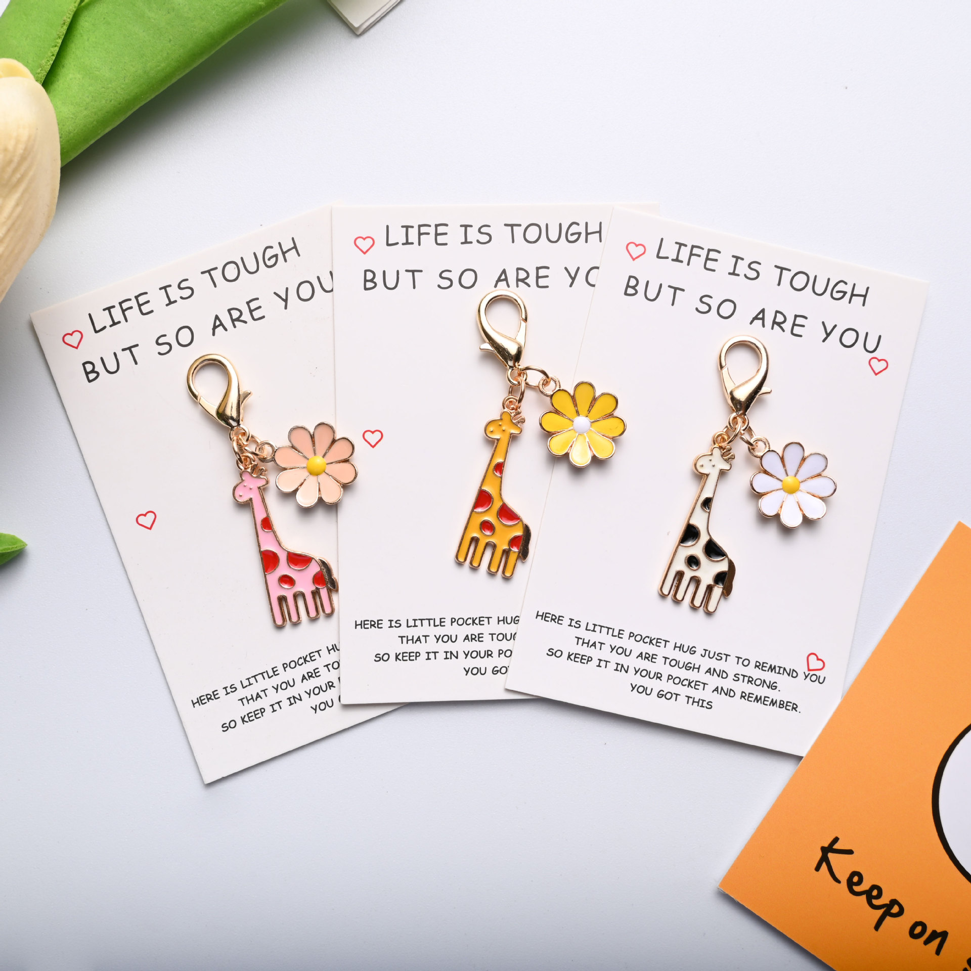 국경 간 뜨거운 판매 생활은 힘들다. 또한 격려의 카드 기린 데이지 키 체인이다스토어 가기