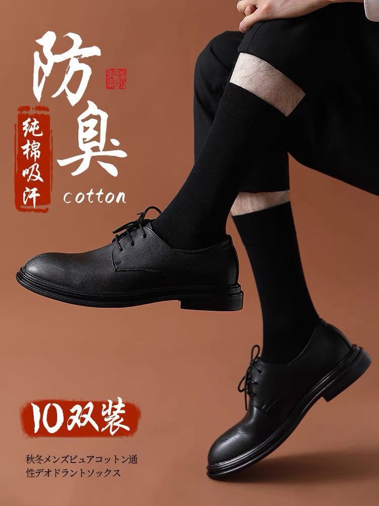 남성용 종아리 중간 검정색 양말, 남성용 가죽 신발, 비즈니스 정장, 특대 사이즈 종아리 중간 양말, 뚱뚱한 남자용 봄, 가을, AliExpress스토어 가기
