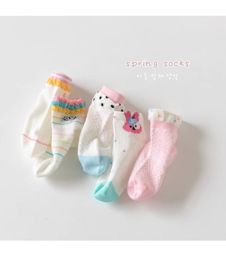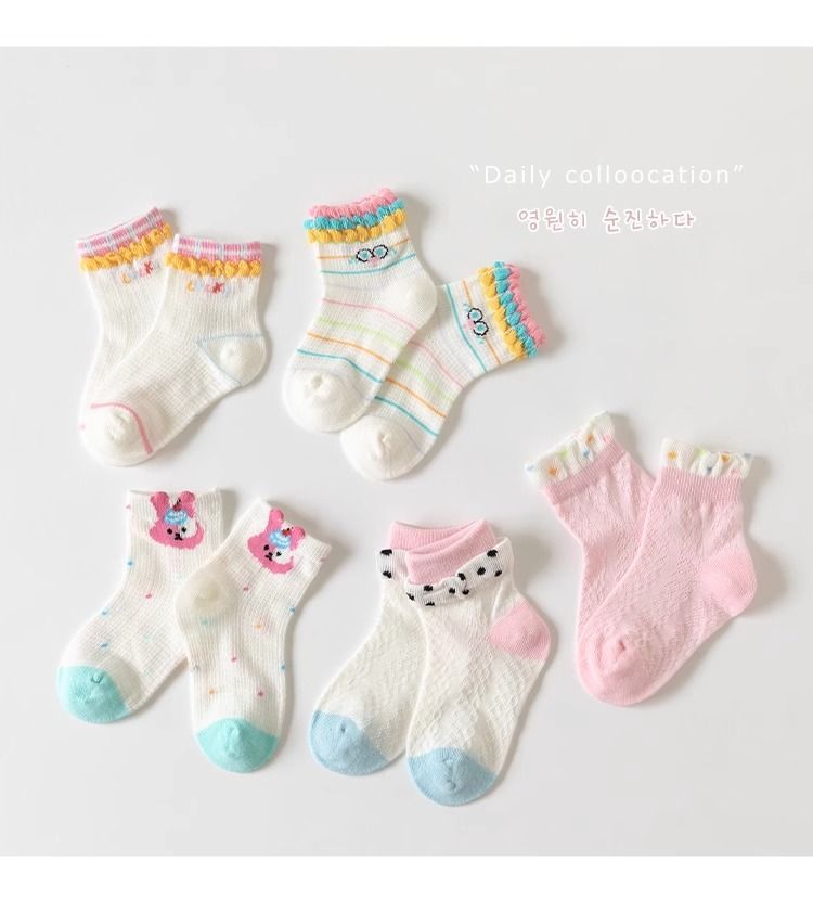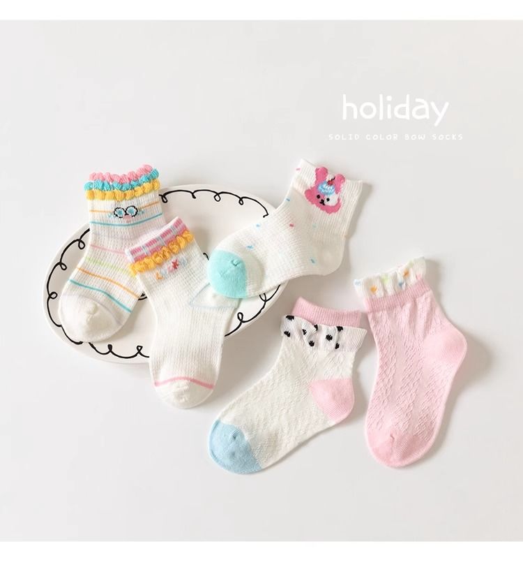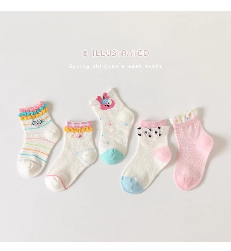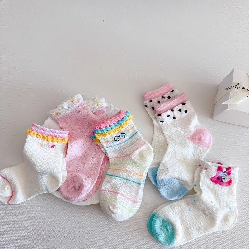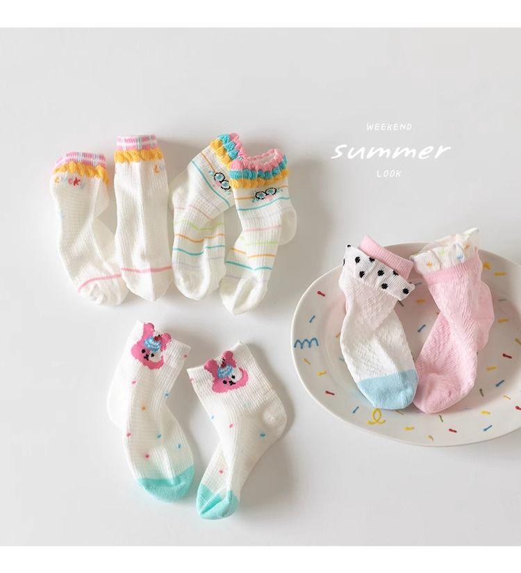 어린이 양말 봄과 여름 얇은 메쉬 양말 소녀 한국 귀여운 만화 레이스 양말 아기 소녀 통기성 양말
