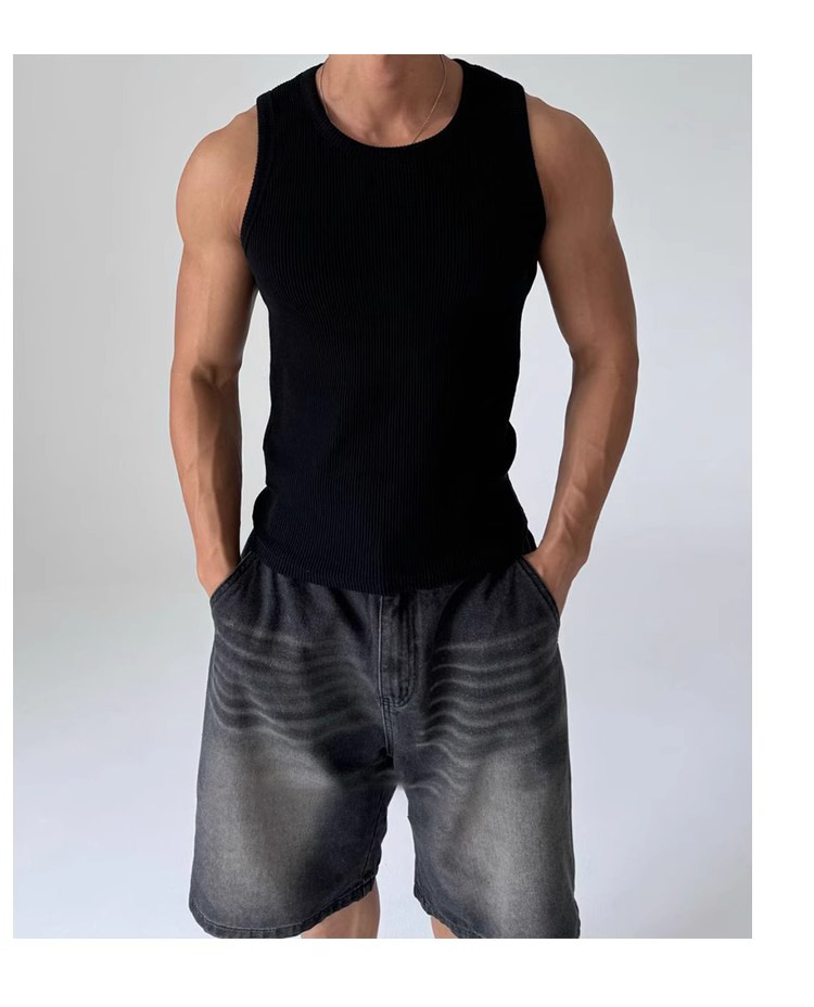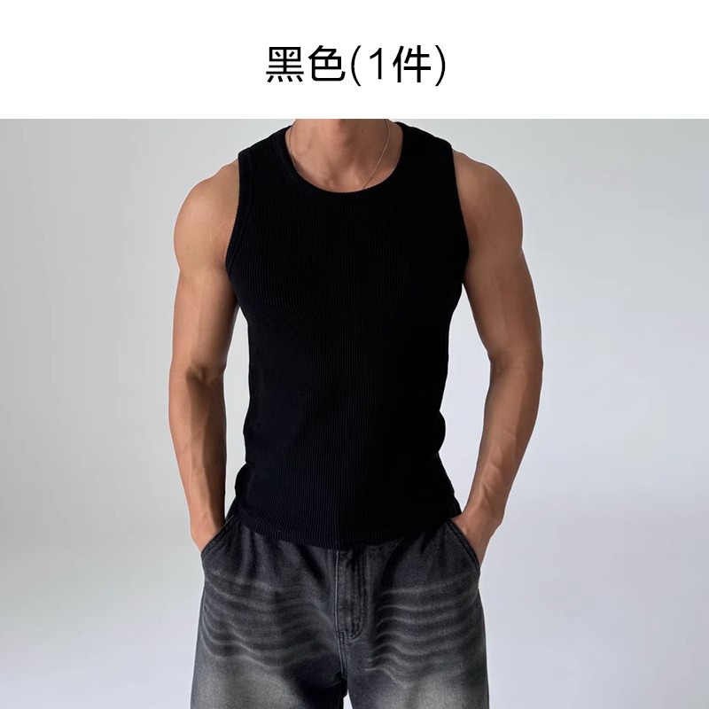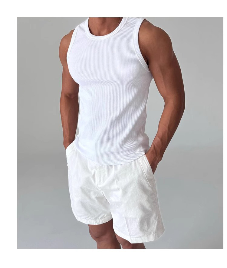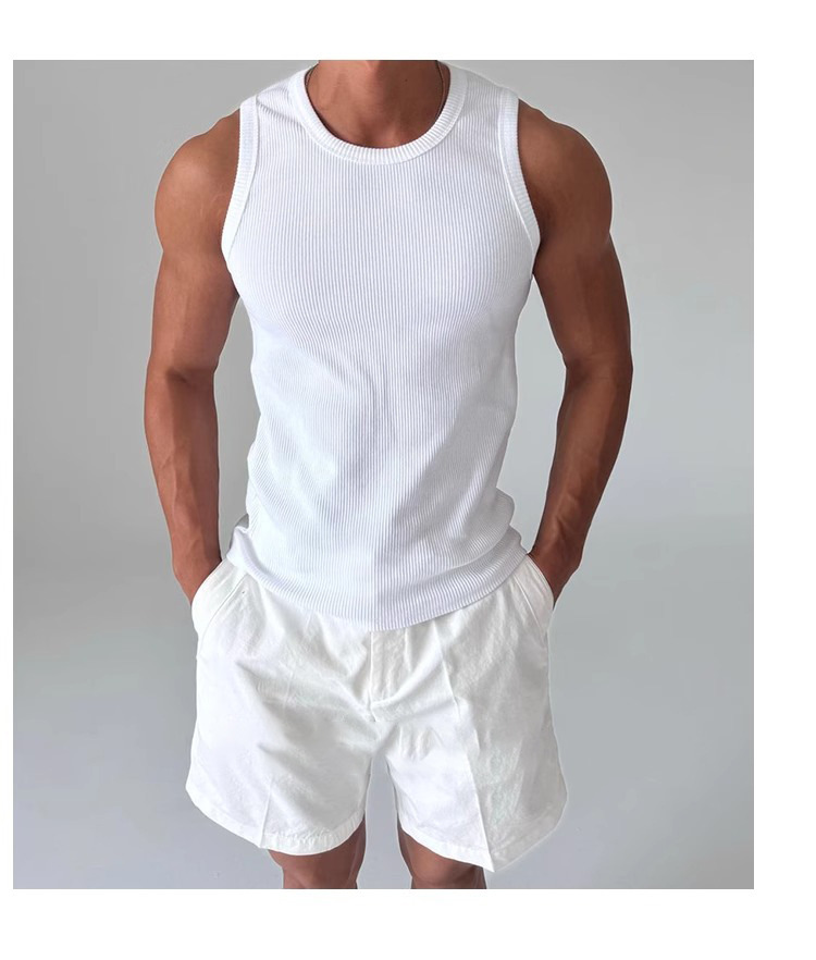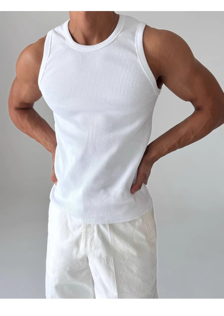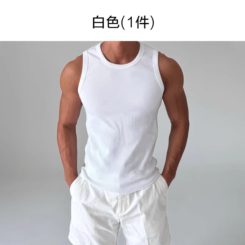 화이트 아메리칸 조끼 남성 여름 2025 스포츠 피트니스 핏 스트립 스트레치 슬림 민소매 티셔츠 세로 스트라이프 탑스토어 가기