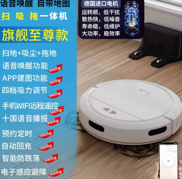 2025 새로운 스위핑 로봇 가족, 완전 자동 지능형 걸레 기계 청소, 드래그 및 흡입 3 대 1 진공 청소기
